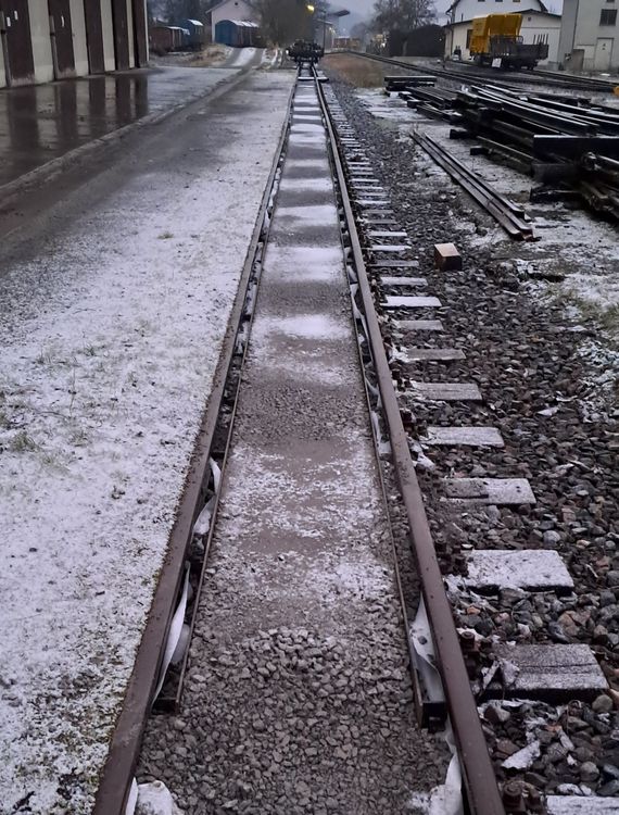 Heute wurde im Gleis 4 der einzudeckende Bereich zwischen den Schienen mit KFT verfüllt und verdichtet. Anschließend wurde noch das letzte Woche im Anbau des Reparaturhauses eingebaute KFT ebenfalls verdichtet. In der Werkstatt ging es ...