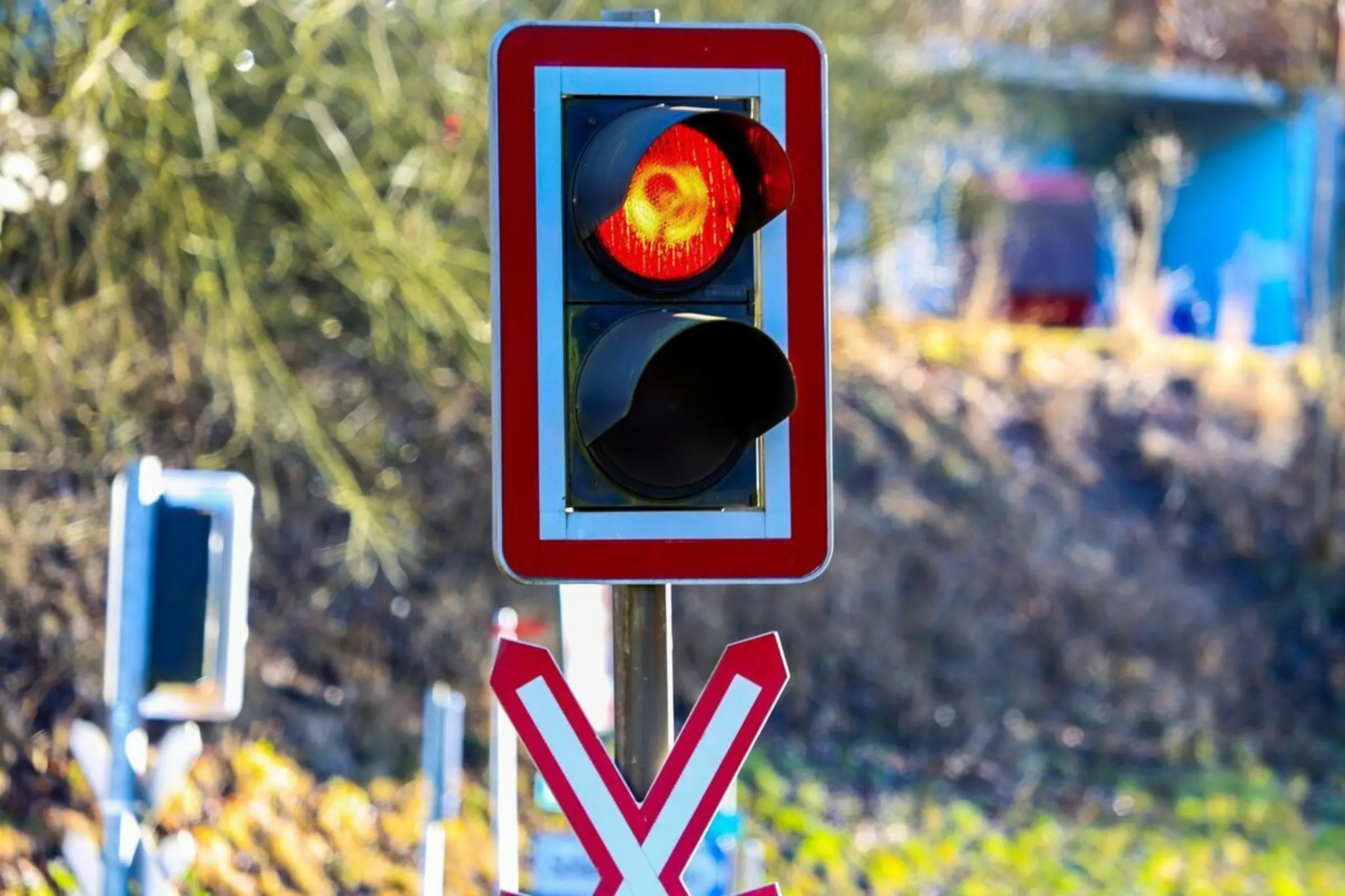 Auf der L 104: Auto landete bei Unfall auf Gleisen der Lokalbahn