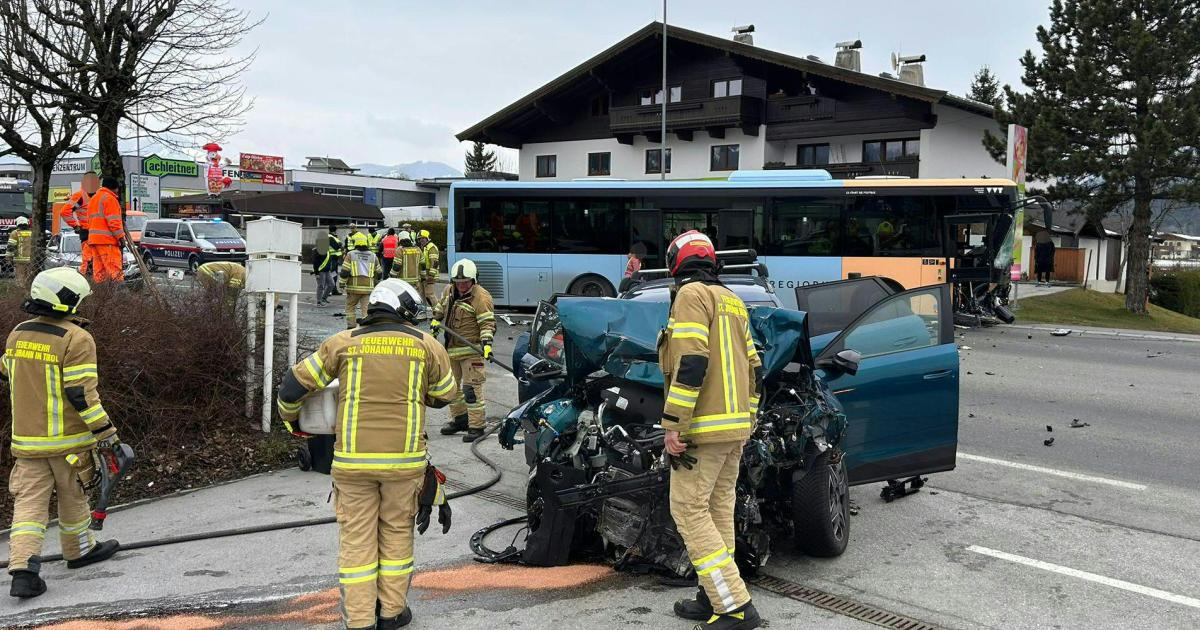 5 Schwerverletzte nach Crash von Linienbus und Pkw in Tirol