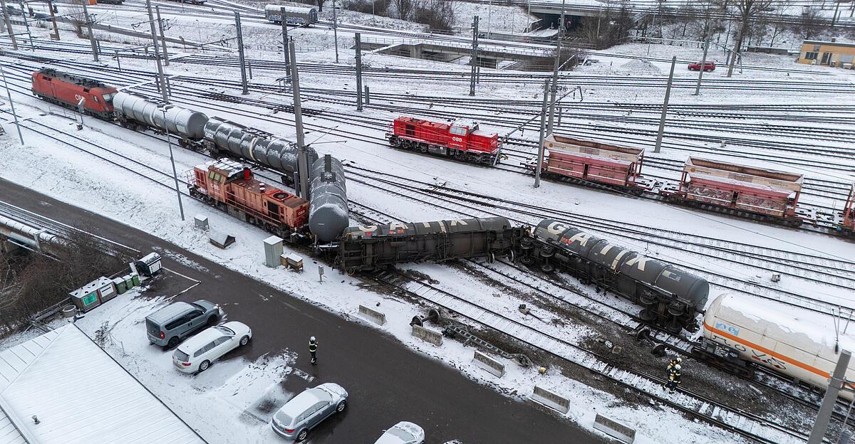 Im Linzer Industriegebiet ist Montagfrüh ein Güterzug entgleist. Laut Berufsfeuerwehr Linz kippten mehrere Waggons für Gefahrenguttransport um. Sie waren zwar leer, aber nicht gereinigt. Die Aufräumarbeiten werden den ganzen Tag andauern...