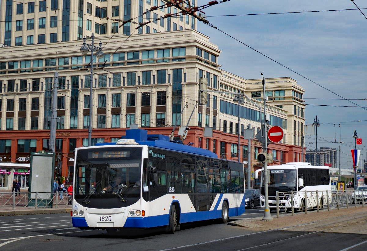 St. Petersburg Obusse, Oberleitungsbus 1820 (Trans-Alpha / 2009) auf der Linie 15 in der Ligorsky Ave.