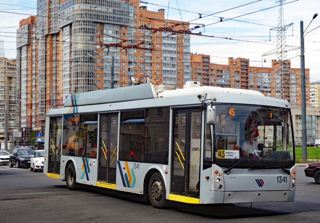 St. Petersburg Obusse, Oberleitungsbus 1341 (Trolza / 2016) auf der Linie 45 in der Nähe von Ulitsea Desantnikov.