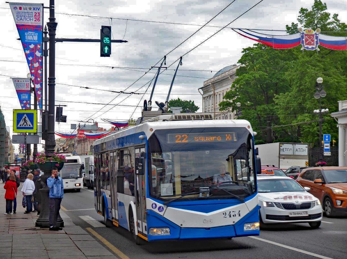 St. Petersburg Obusse, Oberleitungsbus 2454 (BKM / 2016) auf der Linie 22 in der Nevsky Ave.