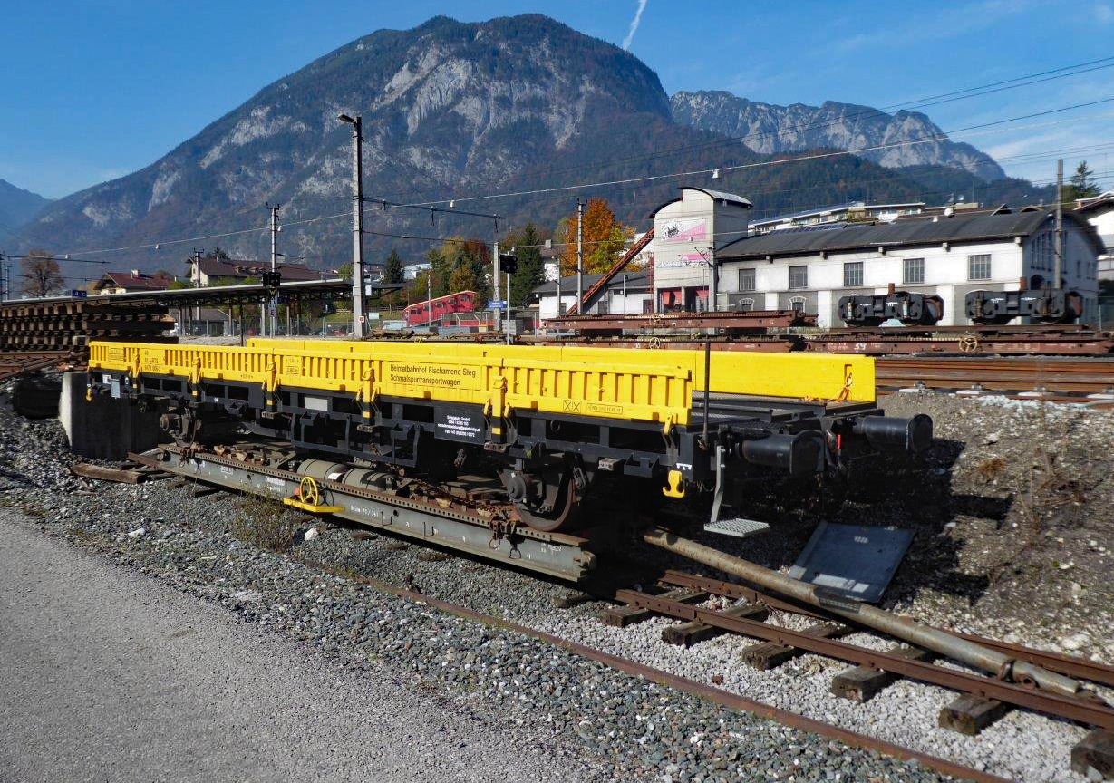 Umfangreiche Bauarbeiten im Bahnhof Jenbach der Zillertalbahn führten in der 2. Oktoberhälfte 2019 zu einem kurzen Revival das Rollwagenbetriebes. Die Normalspurwaggons mit den neuen Betonschwellen wurden aufgeschemelt und zur Baustelle rangiert. Ein inzwischen (leider) seltener Anblick – findet doch aktuell in Österreich kein planmäßiger Rollwagenbetrieb mehr statt.