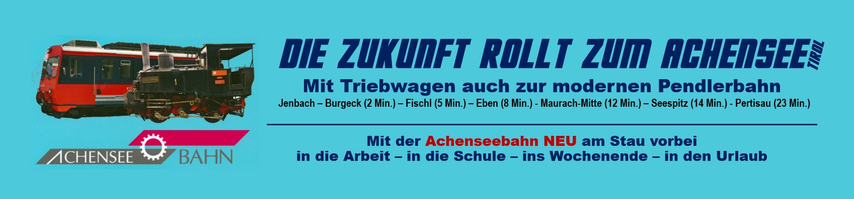 Die Zukunft fährt zum Achensee mit modernen umweltfreundlichen Elektrotriebwagen. Zusammen mit den touristisch interessanten Dampfzügen werden sie die Achenseebahn zukunftsfit machen.
