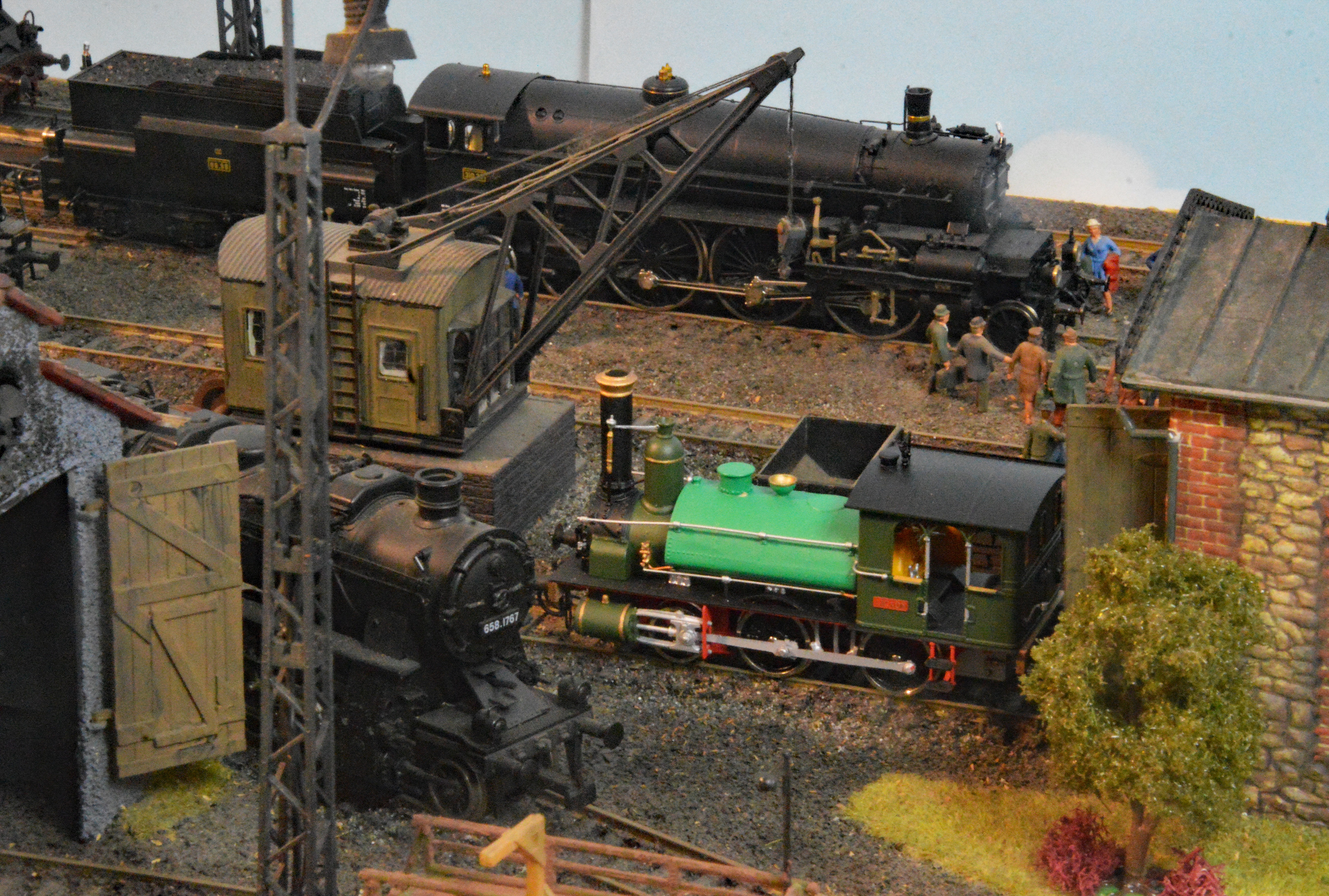 Die Idee dieser Fotoserie ist, die vielen Details des Dampflok-Betriebswerkes unter möglichst vielen Blickwinkeln zu zeigen. Es ist geradezu unglaublich, wieviele Details auf einem Diorama von 60 x 90 Zentimetern zu finden sein können. Unter unterschiedlichen Blickwinkeln vervielfältigen sich die Eindrücke. Aus über 200 Fotos wurden 30 ausgewählt, die hier gezeigt werden.