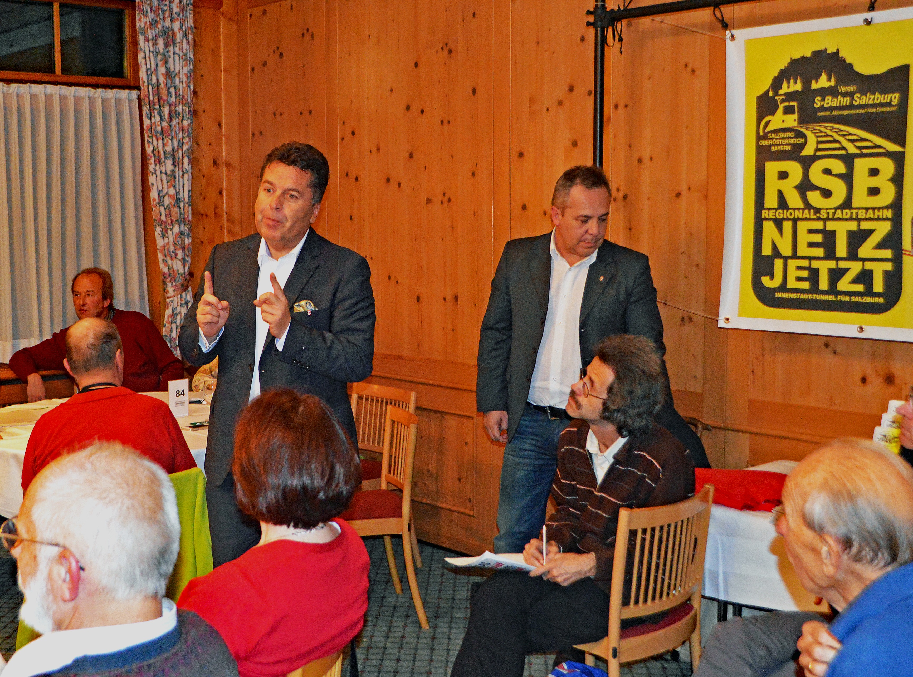 Kirchenwirt Itzling Besuch Verkehrslandesrat Mayr bei Verein "S-Bahn"