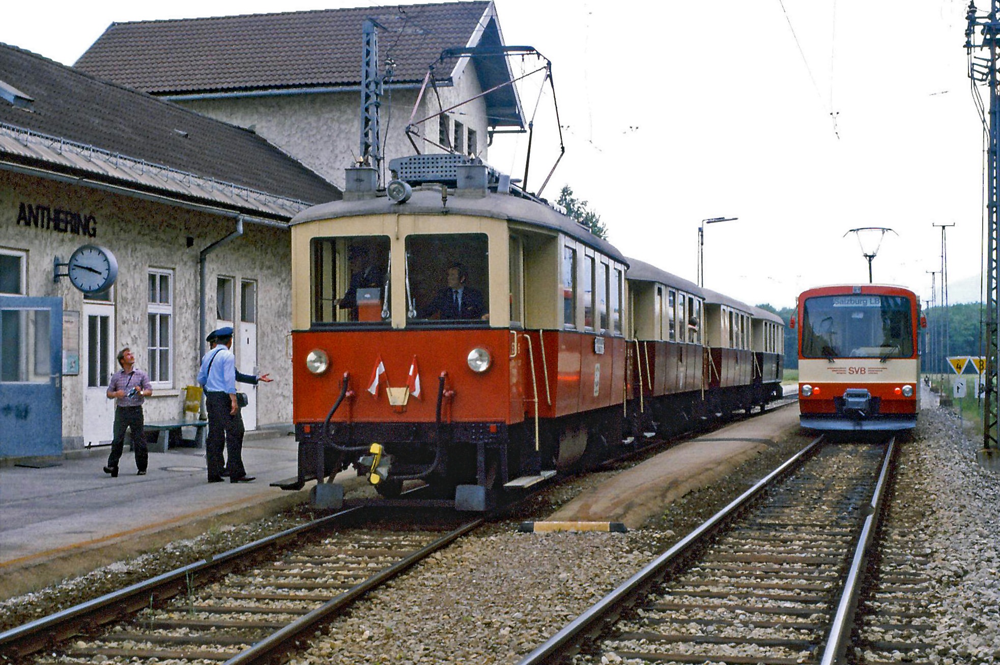 SETG Rote Elektrische Südlinien historische Fotos, Salzburger Lokalbahn durch die Stadt Richtung Königssee, Bahnhof St. Leonhard am Untersberg