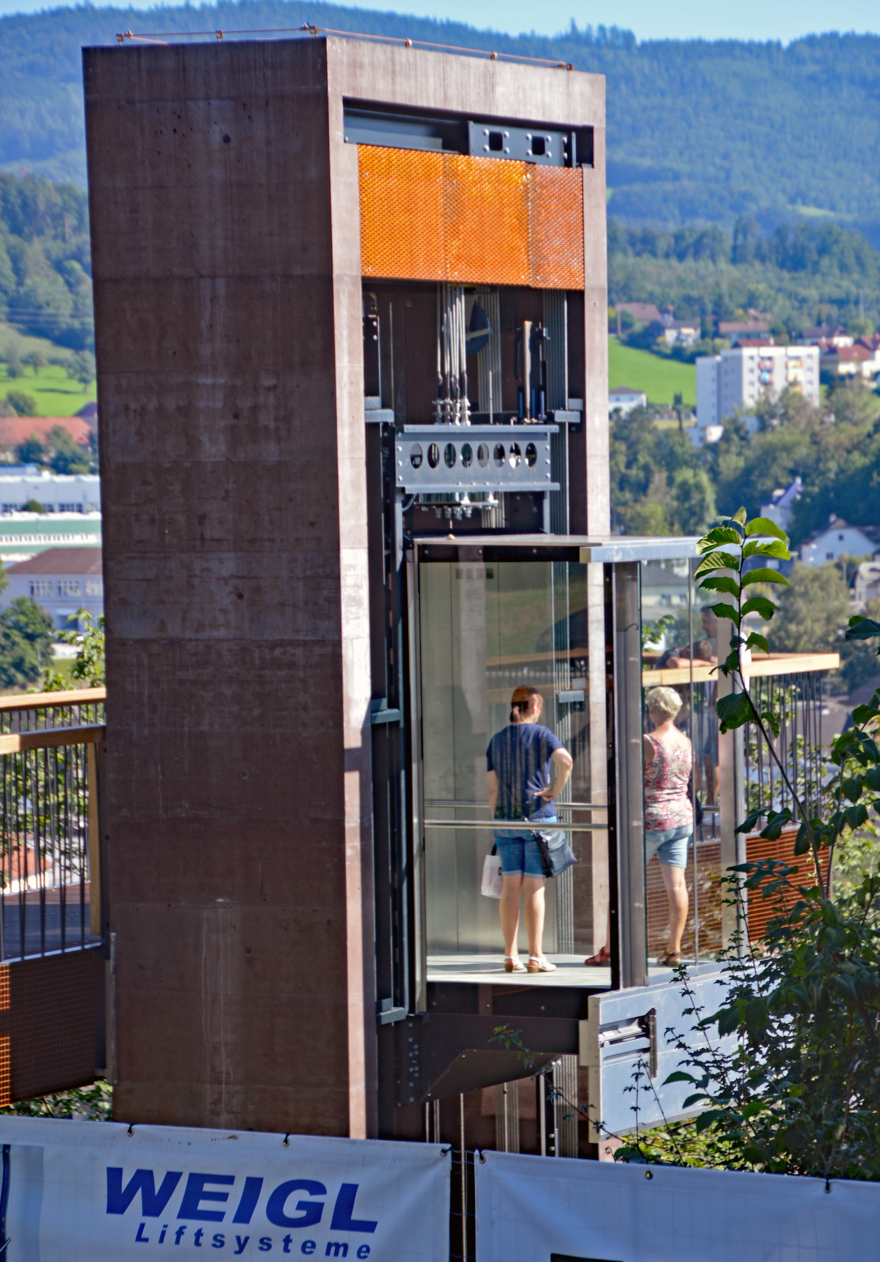 Panoramalift Steyr auf den Taborberg von der St.Michaelskirche zum Tabor-Friedhof. Personenlift zur freien Fahrt. Dieser Lift erspart den Aufstieg über die lange Stiege auf den Tabor und die Busfahrt.
