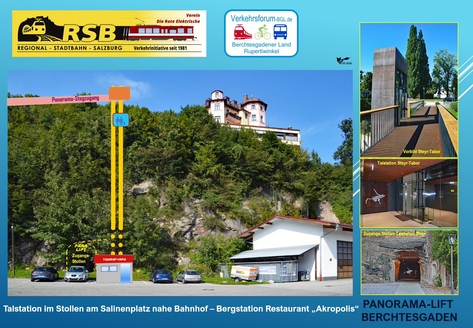 Der Höhenunterschied in Berchtesgaden zwischen Bahnhof und der Ortsmitte beträgt 30 Meter und muss eine Felswand überwinden. Damit sinkt die Attraktivität des Bahnreisens im Berchtesgadener Land und man jammert über den Straßenverkehr im Berchtesgadener Land. Mit der "Neuen Königsseebahn" sollte sich das ändern, besonders wenn der Pano-Lift in Berchtesgaden kommt.