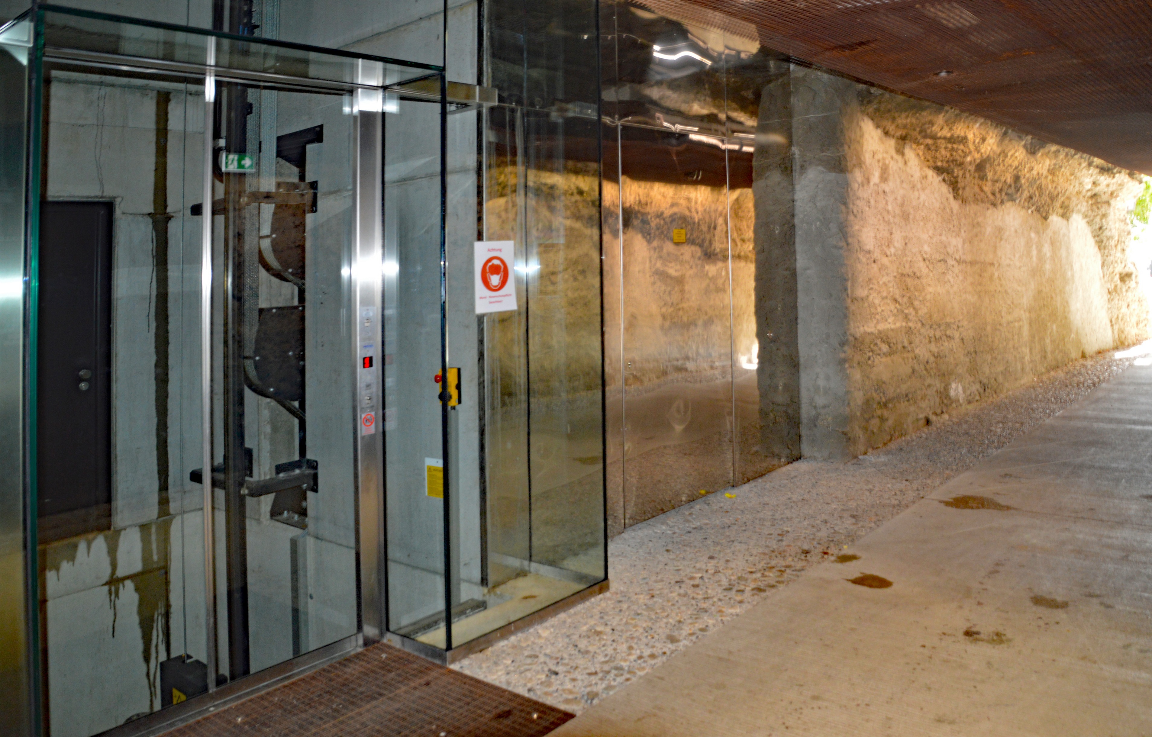 Am Salinenplatz befindet sich ein ungenutzter Stollen, der als Zugang zum LIft benützt werden kann. Genau das hat man in Steyr gemacht