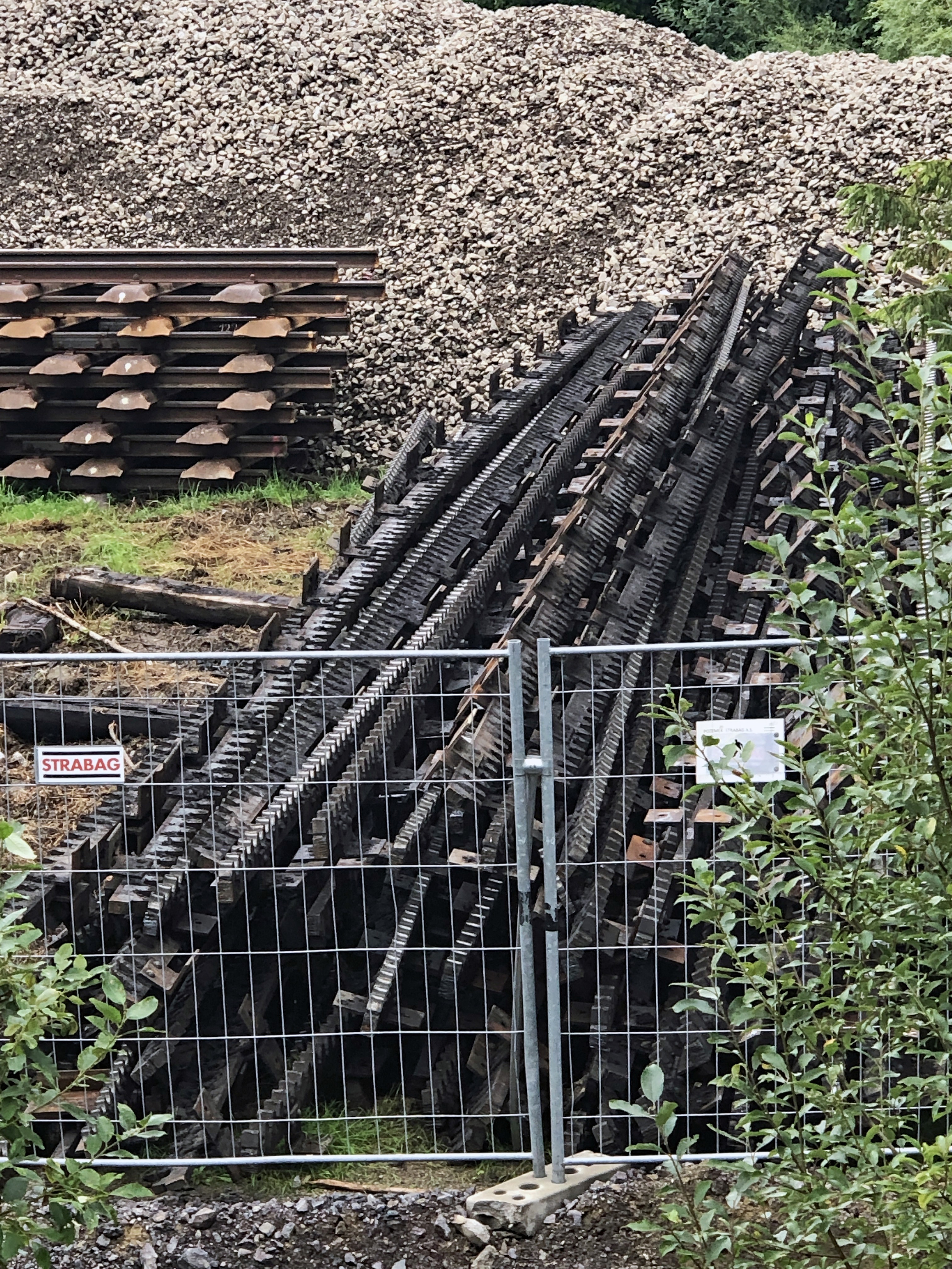 Ein fast wehmütiger Blick auf das Gleismaterial mit den Zahnstangenweichen, die eigentlich auf der Achenseebahn noch gute Dienste hätten leisten können, hätte die Tiroler Politik der AB nicht den Konkurs beschert. Links im Bahnhof Štrbské Pleso noch in Betrieb und rechts auf einen Haufen geschlichtet, der wohl den Weg jedes Alteisens gehen wird! Auch das ist ein trauriges Kapitel bei der Achenseebahn.