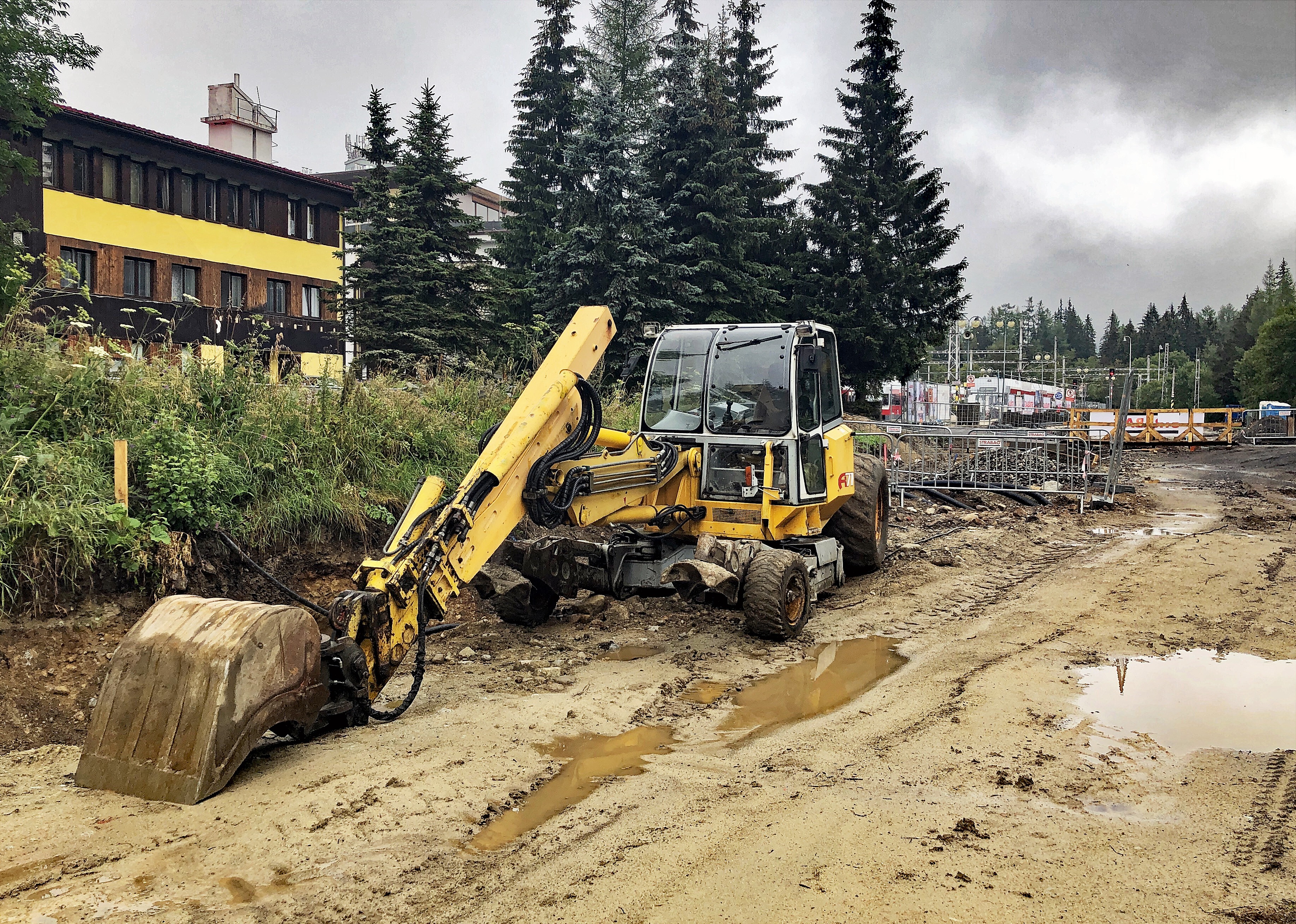 Auf der Strecke der Zahnradbahn Štrba-Štrbské Pleso stehen teilweise noch die alten Fahrleitungs-Masten, die auf der Achenseebahn noch lange gute Dienste hätten machen können, teilweise wurden bereits die Mastfundamente für die neuen Oberleitungsmasten betoniert.