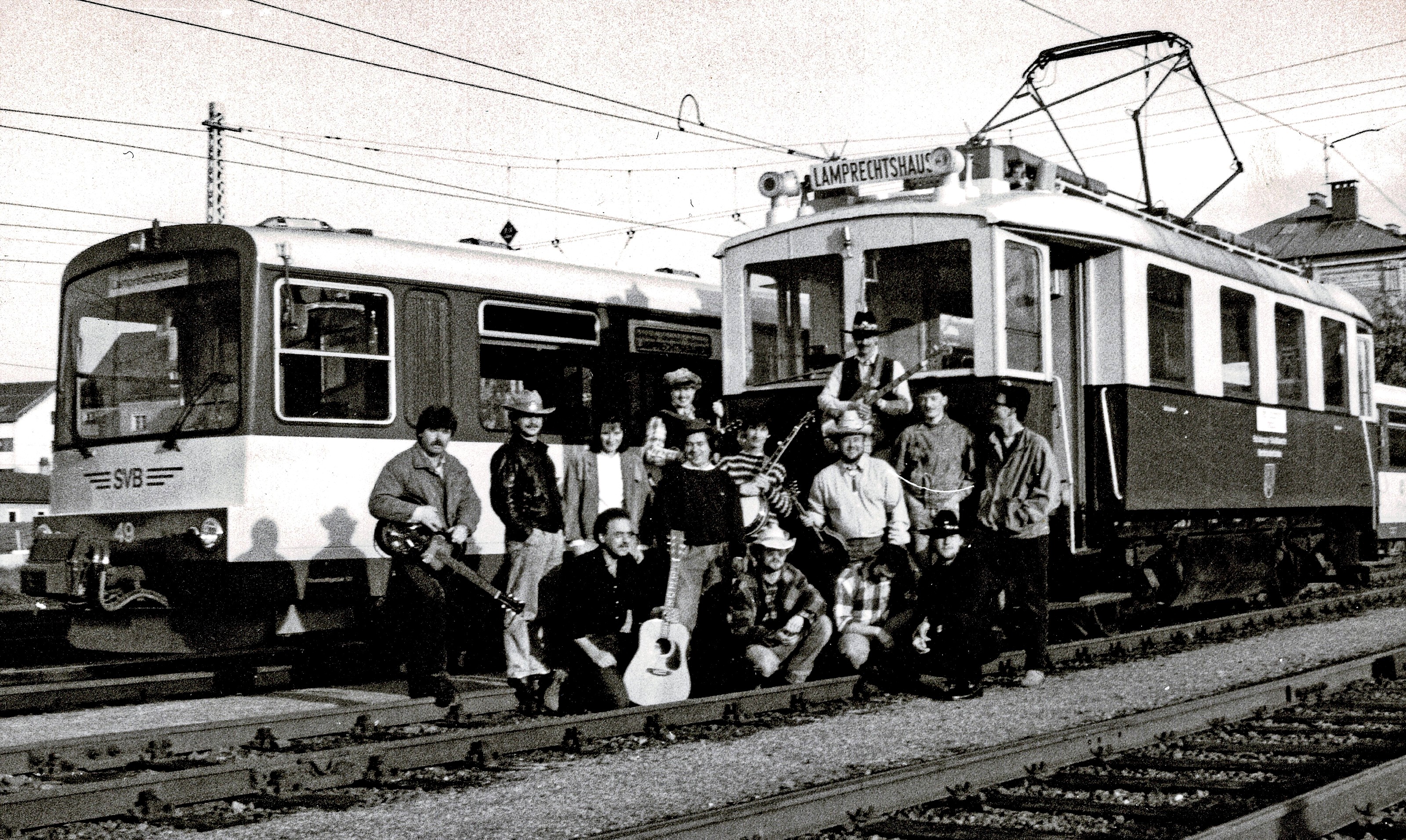 Impressionen vom Jubiläum "100 Jahre Salzburger Lokalbahnen 1886-1986", mit Sondermarke und Western-Express mit Country-Music live im Zug, hier mit den Bands "Country Crew" und "Tennessee-Special". Über 70 Attraktionen lockten rund 30.000 Festgäste am Festwochenende entlang der Lokalbahn!