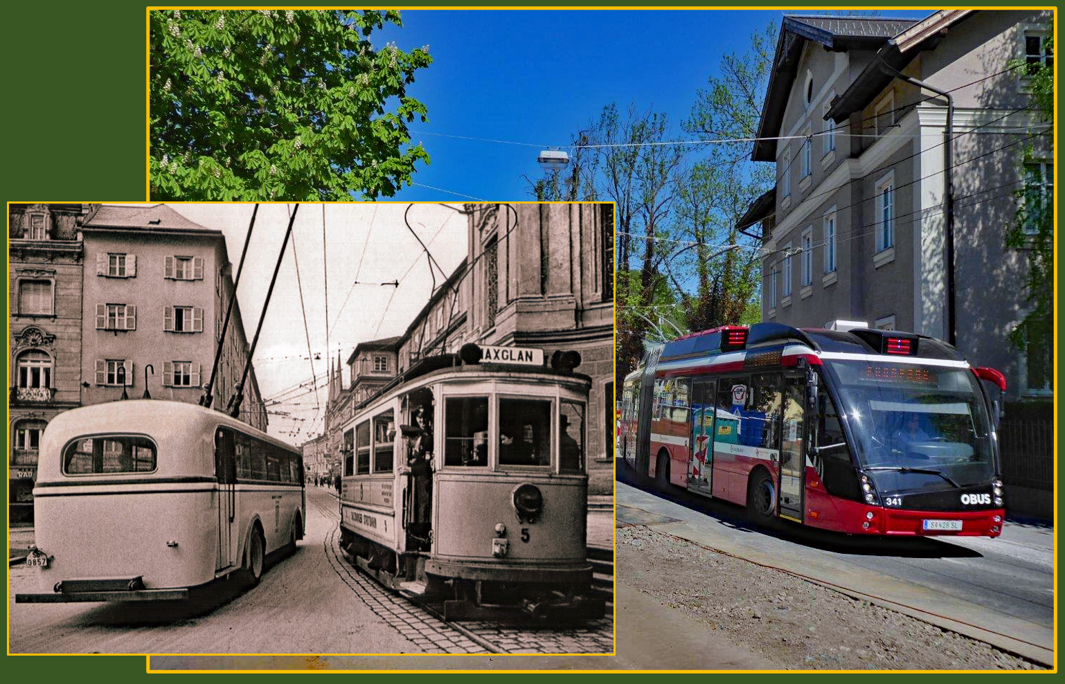 die erste und letzte Generation vom Obus in Salzburg, dazwischen die "Salzburger Stadtbahn" Salzburgs Gelbe Elektrische, die Straßenbahn