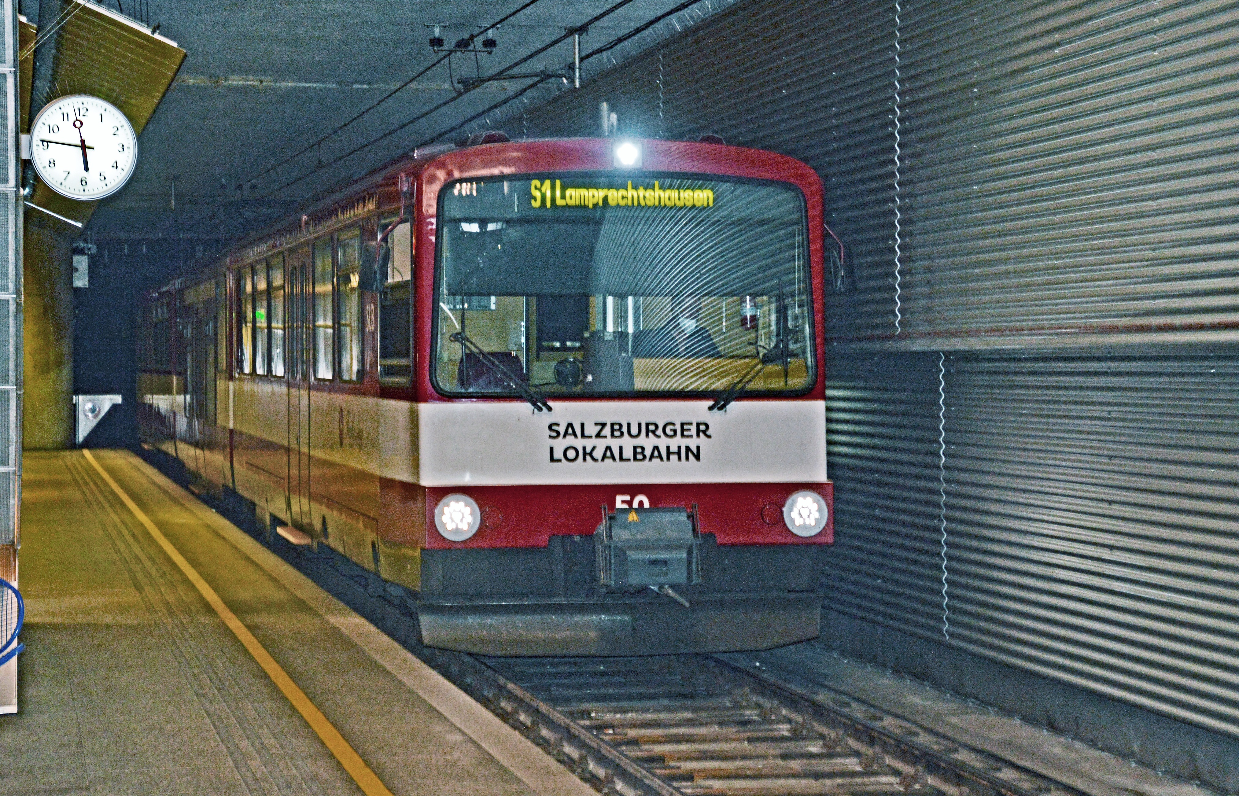 Die Salzburger Lokalbahn im unterirdischen Lokalbahnhof.