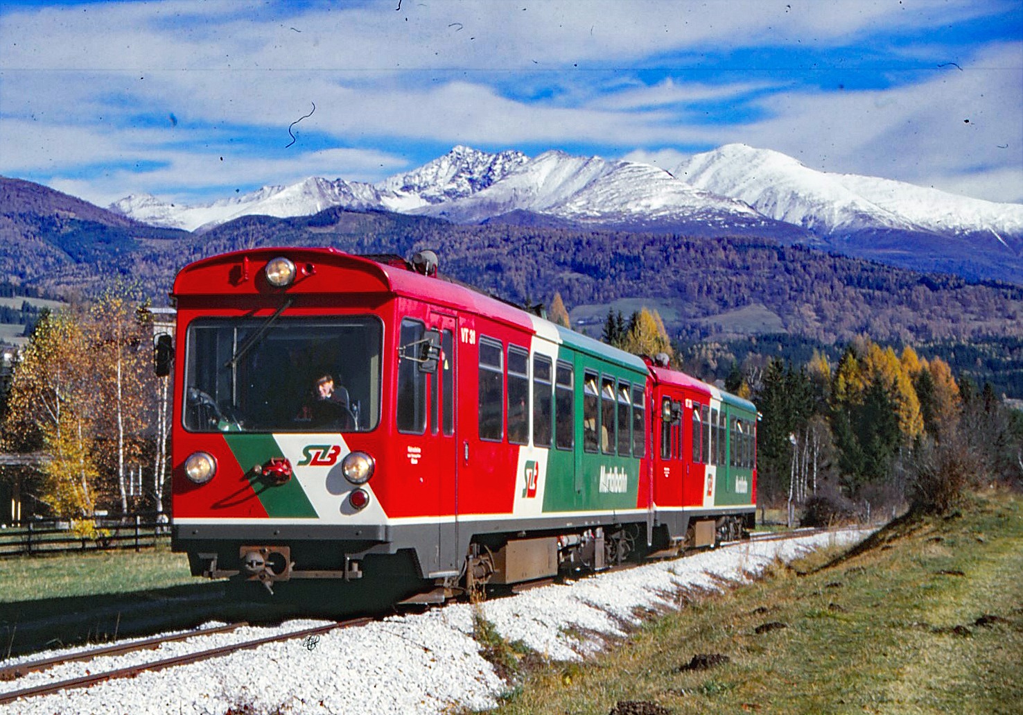 Sowohl auf der Murtalbahn (links), als auch auf der Pinzgauer Lokalbahn (rechts) verkehren stabile und damit extrem sichere Fahrzeuge. In der Bildmitte sieht man den Stahlkasten des Triebwagens der Salzburger Lokalbahn, der eine Ahnung von der Stabilität vermittelt.