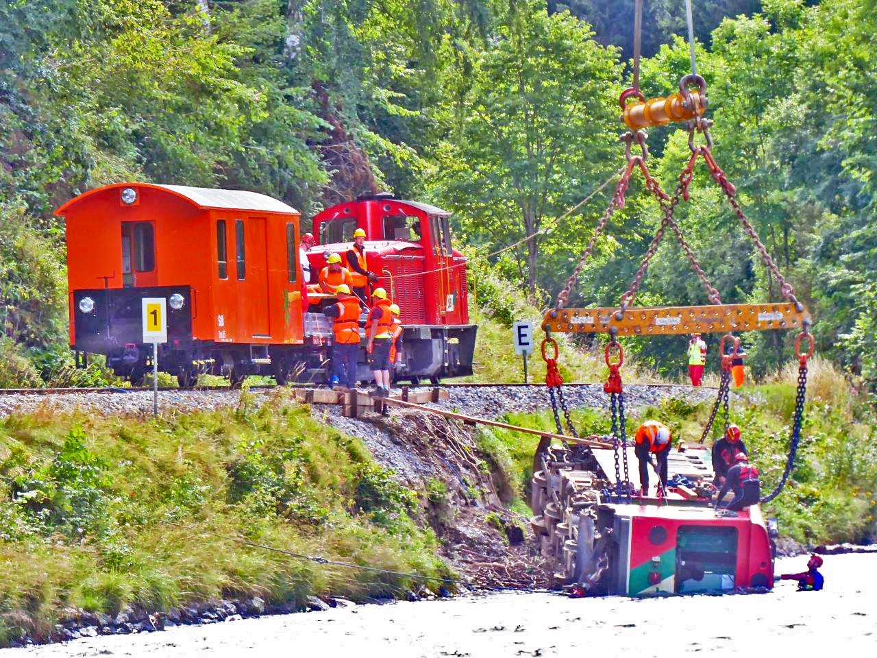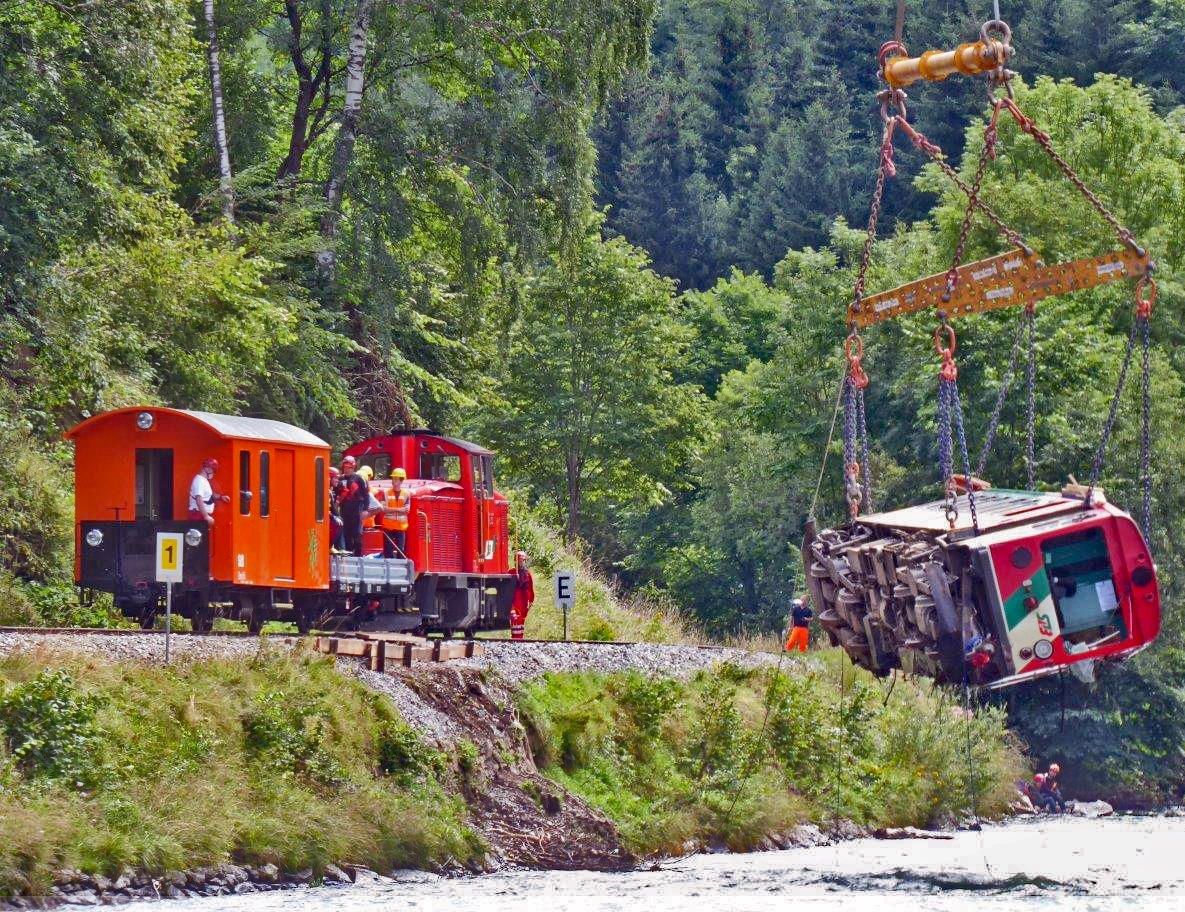Murtalbahn abgestürzter Triebwagen VT31 wird geborgen