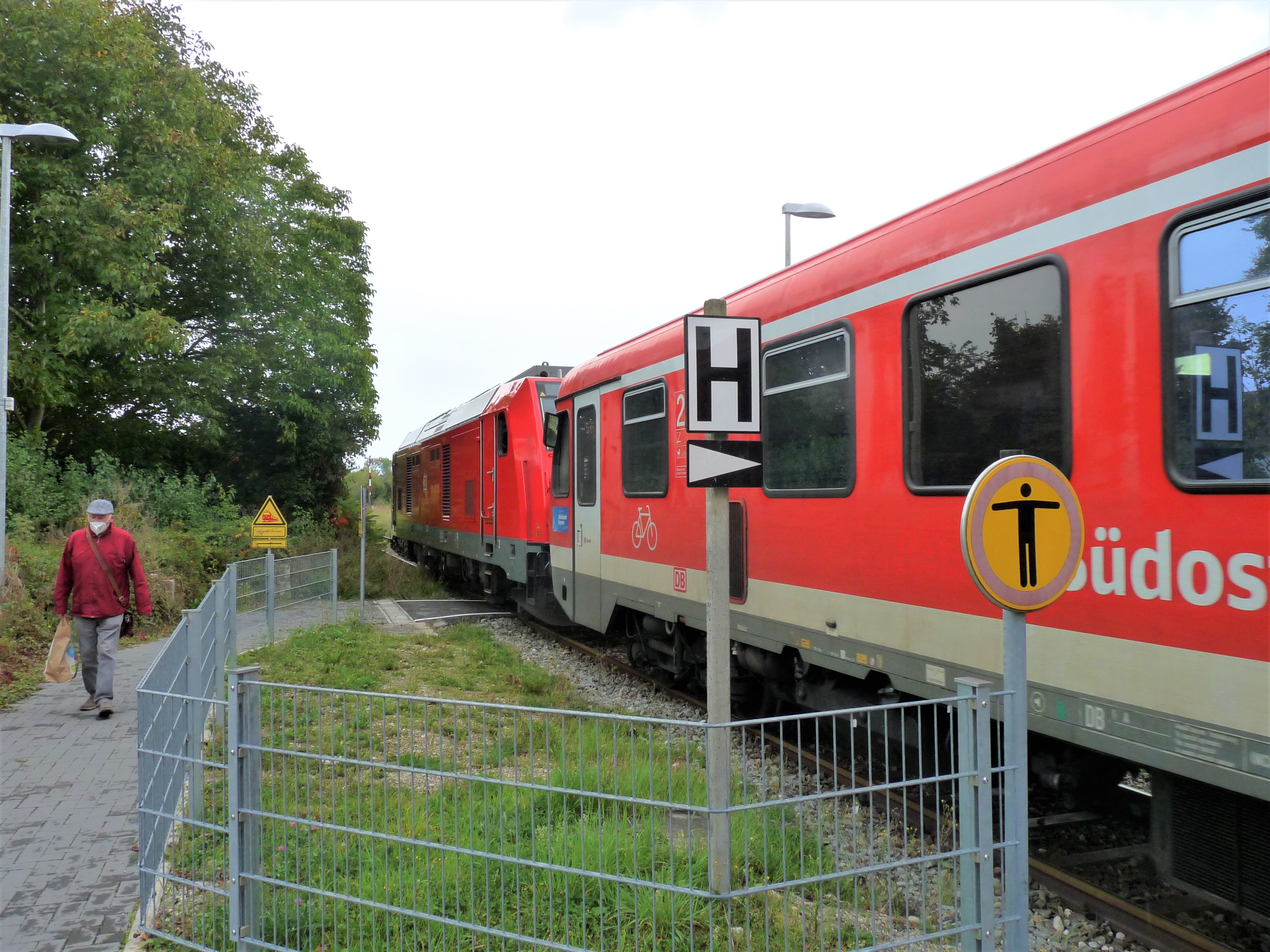 Während auf der nördlichen Bayerischen Tauernbahn Mühldorf - Landshut seit längerer Zeit vor planmäßigen Zügen die modernen dieselelektrischen Loks der Baureihe 245 beobachtet werden können (siehe hierzu im Buch „Die Bayerischen Tauernbahn“ von K. Bürger u. K. Bösenecker, Seite 187), konnte man sie bisher auf dem südlichen Abschnitt Mühldorf - Freilassing nicht antreffen. Am 6. Oktober 2021 war dies jedoch der Fall, als im Rahmen einer Überführungsfahrt die 245 003 dem planmäßigen 628er Triebwagen der RB 27985 vorgespannt war. Die Fotos zeigen das Gespann auf Gleis 1 des Bahnhofs Laufen (Obbay).