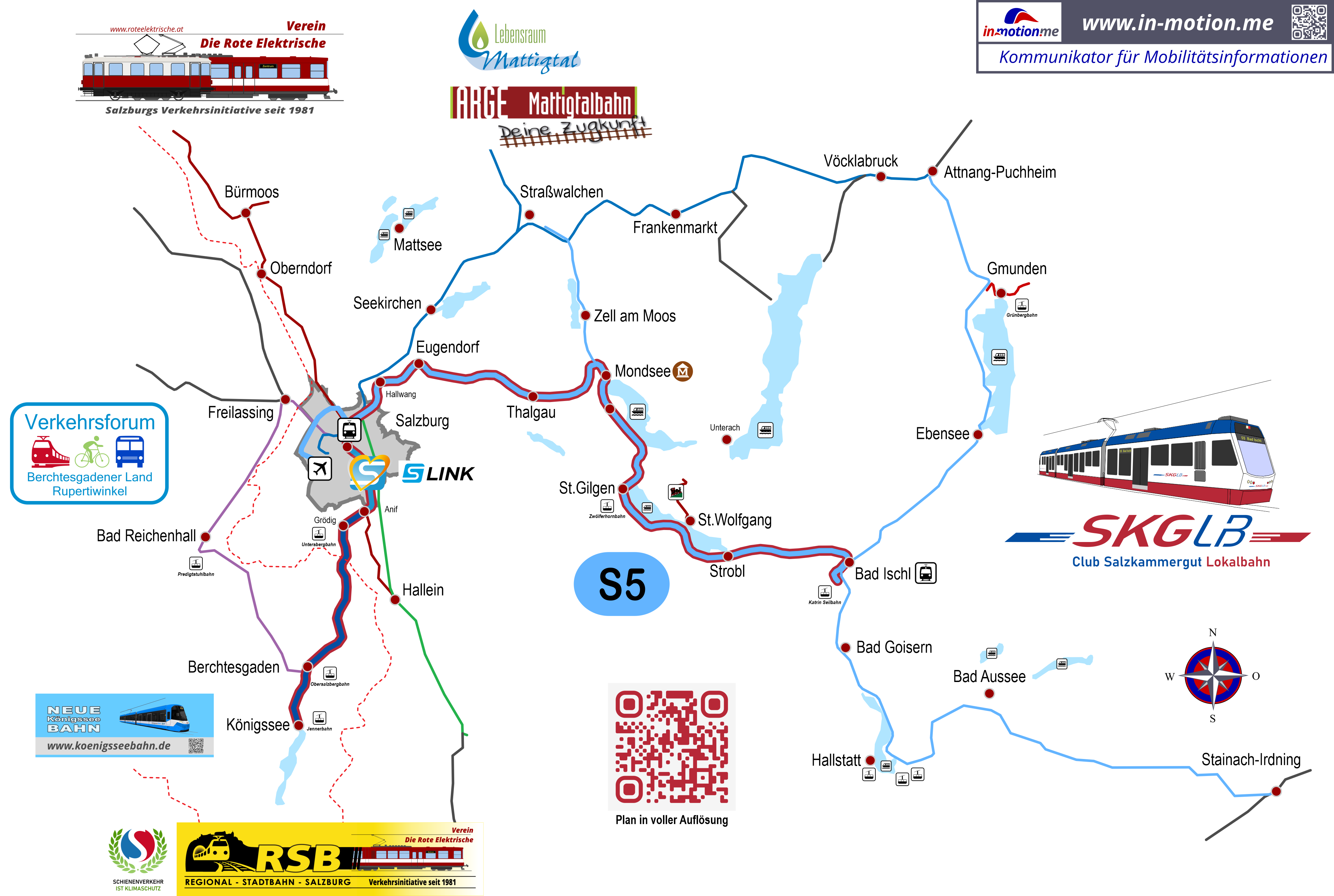 Linienverlaufsplan der neuen Königsseebahn als Teil der Regionalstadtbahn Salzburg (S-LINK).