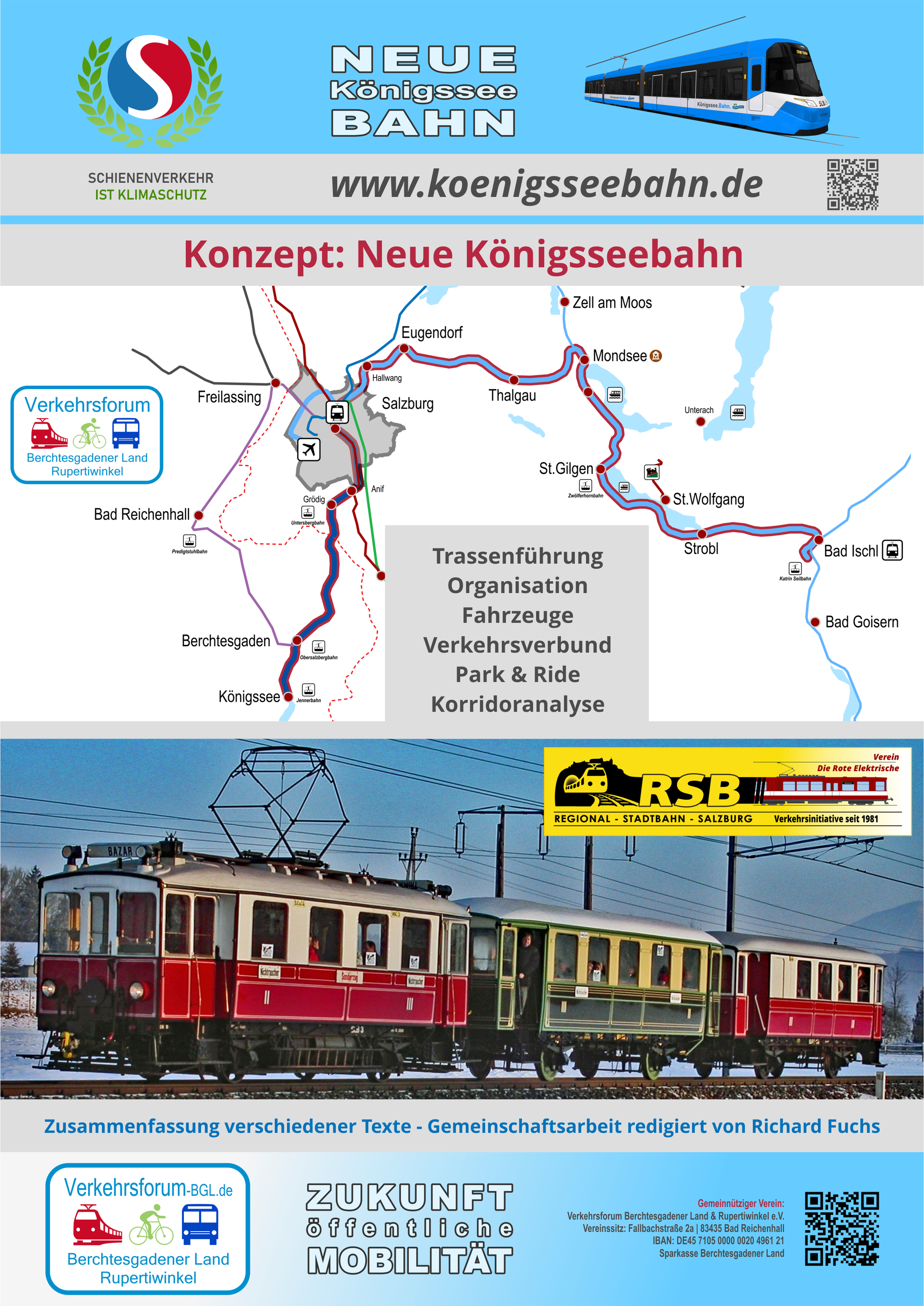 Um anschaulich aufzuzeigen, dass es sich bei diesem Projekt nicht um eine Utopie handelt, haben Mitglieder des Vereins und des Partnervereins „Rote Elektrische“ in Salzburg eine 38-seitige Informationsbroschüre erarbeitet. Diese befasst sich mit den technischen und rechtlichen Herausforderungen des Projekts sowie seiner Finanzierbarkeit, die mit Mitteln nach dem Gemeindeverkehrsfinanzierungsgesetz (GVFG) und mittels Fördergeldern der EU als grenzüberschreitendes Verkehrsprojekt möglich erscheint. Die Broschüre wurde zunächst im lokalpolitischen Bereich (Bürgermeister und Gemeinderäte der fünf Gemeinden des Berchtesgadener Talkessels sowie Landrat und Mitglieder des Kreistags BGL) verteilt.
