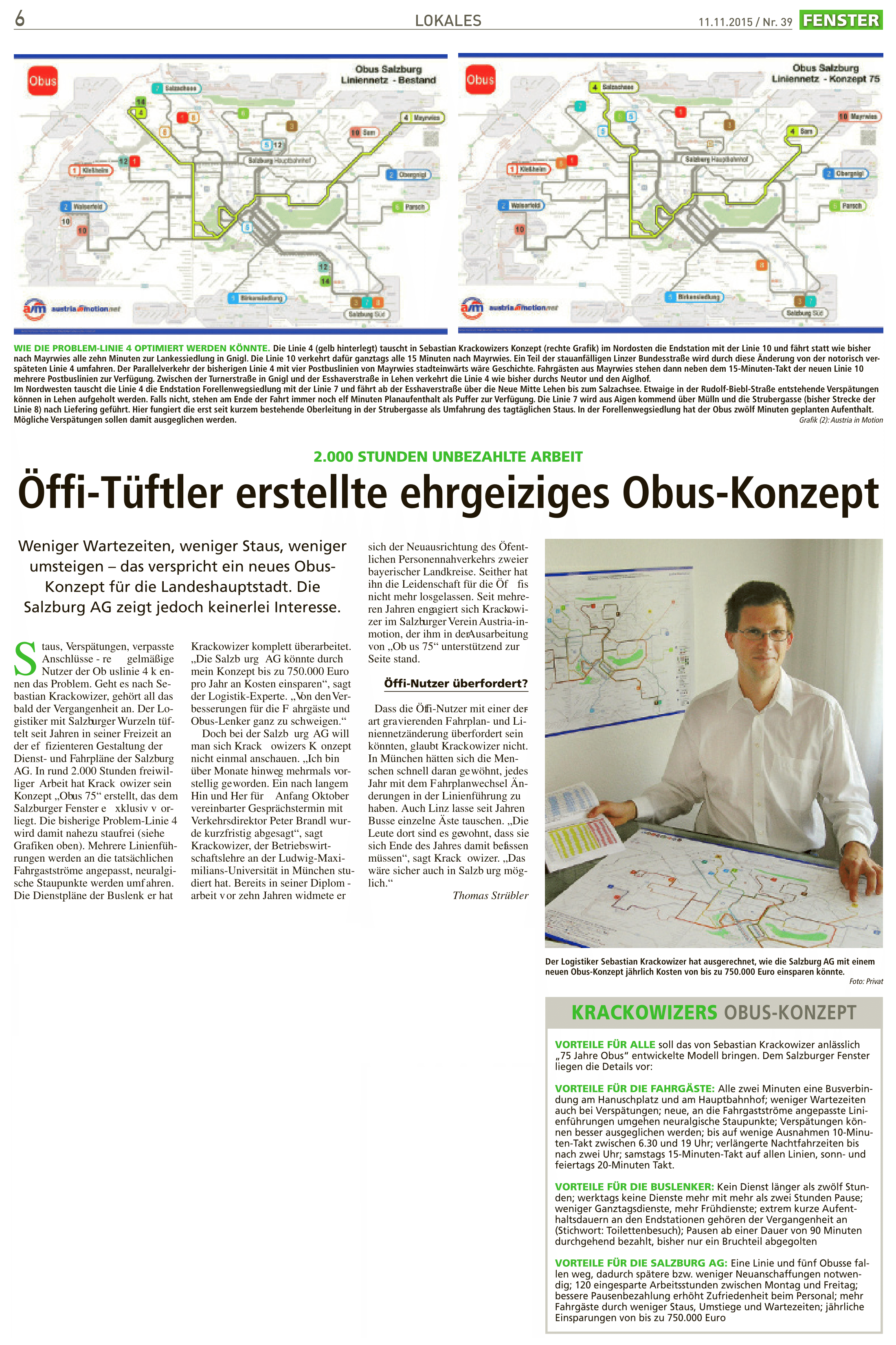 Salzburger Fenster - November 2015. "Schon im November 2015 versuchte Sebastian Krackowizer seine Vorschläge der Salzburg AG zu präsentierten, scheiterte jedoch an der damaligen und derzeitigen Führung, die jegliche Diskussion ablehnte und medial verbot".