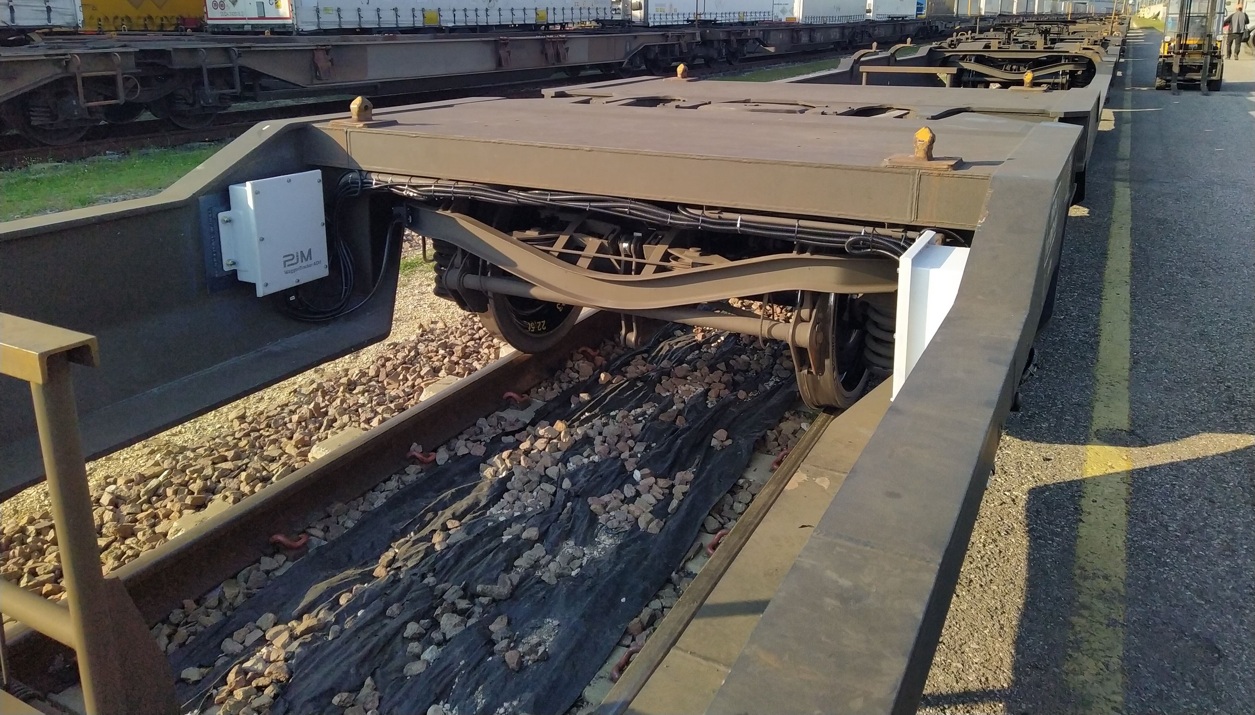 ► Echtzeit-Stützbock-Überwachung zur zuverlässigen und sicheren Erkennung der korrekten Einstellung bei Trailer-Transporten im Intermodal-Bereich, gepaart mit der automatisierten Bremsprobe (entwickelt von SBB Cargo und PJM)