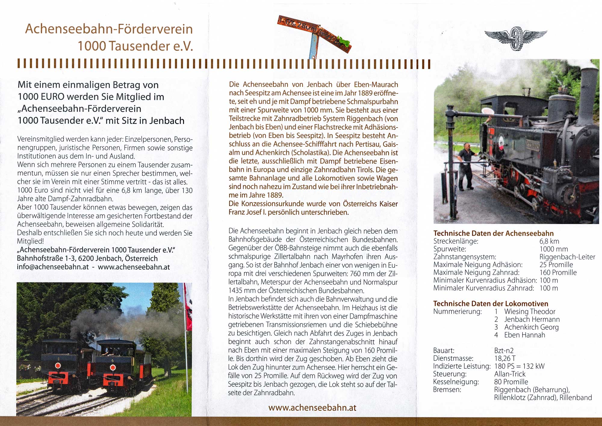 ORIGINALTEXT Achenseebahn-Fördervereins „1000 Tausender“