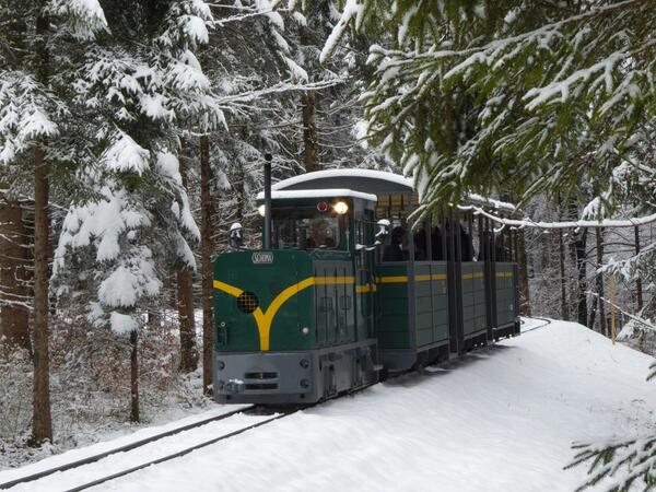Die 600mm Schmalspurbahn im Salzburger Freilichtmuseum Großgmain – sie geht übrigens heuer bereits in die 12.Saison – ist nur selten mit durchgehender Schneedecke zu bewundern.
