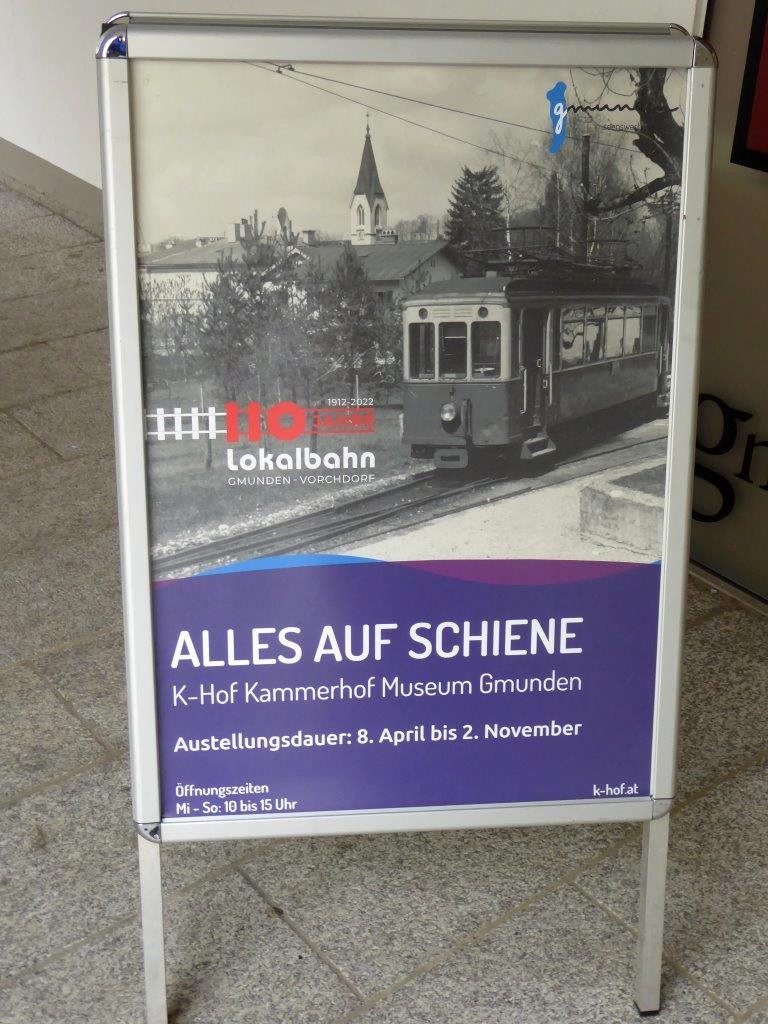Als erste Veranstaltung im Festreigen um das Jubiläum "110 Jahre Lokalbahn Gmunden - Vorchdorf" eröffnete das Kammerhof Museum Gmunden - im Stadtzentrum nahe dem Rathausplatz gelegen - am 8.April 2022, in Anwesenheit von viel lokaler Prominenz, eine informative Ausstellung zur Geschichte dieser meterspurigen Lokalbahn.