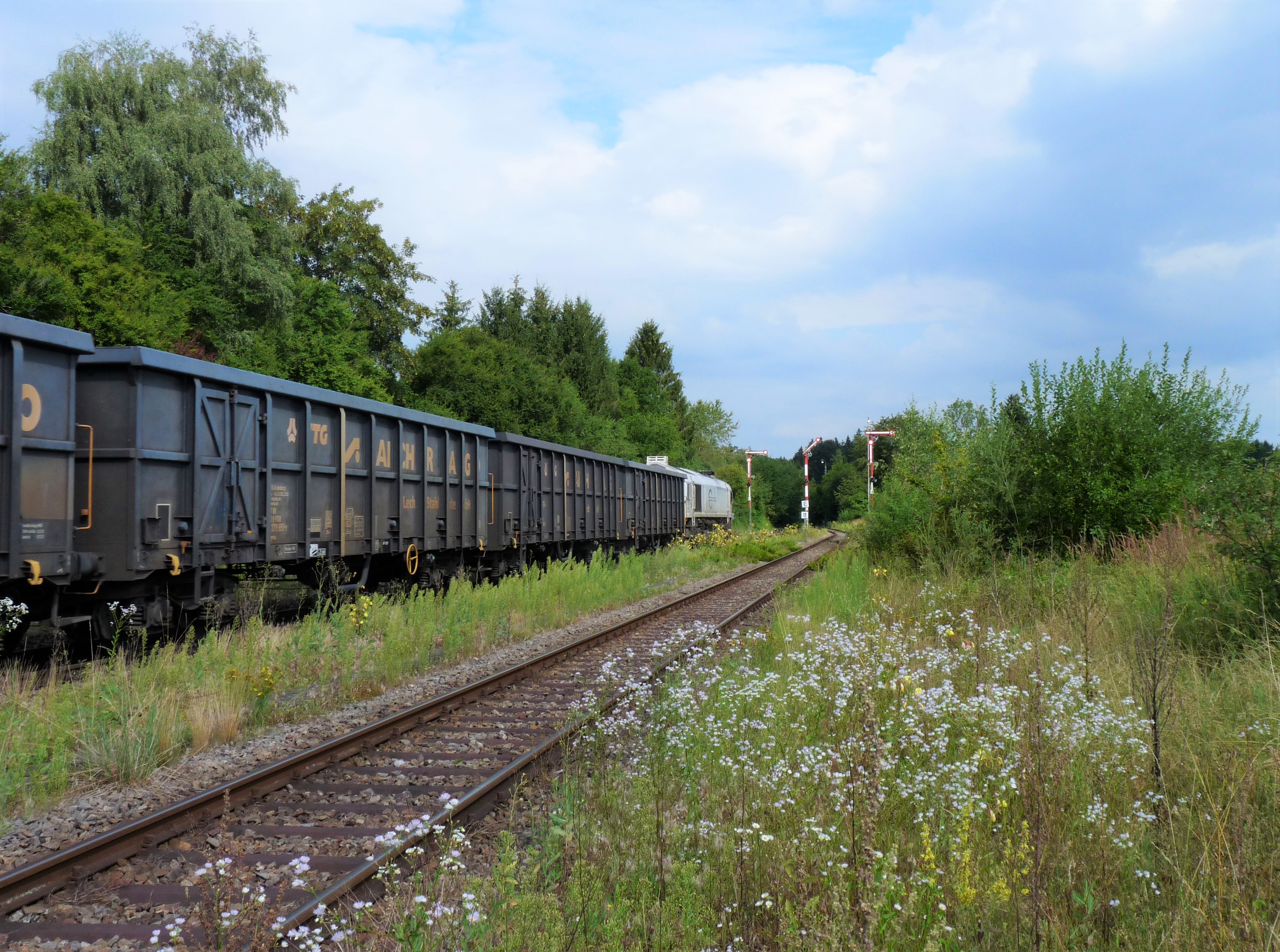 Containerzug zwischen Lepperding und Gastag. Müllzug und Containerzug kreuzen sich im Bahnhof Fridolfing.