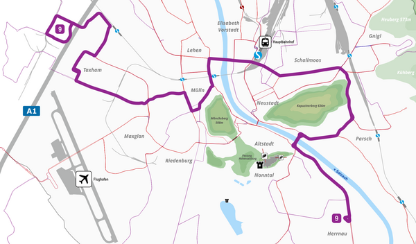 Teil-Liniennetz | Konzept Unterkofler 2021/2022 | Linie 8, 9, 12