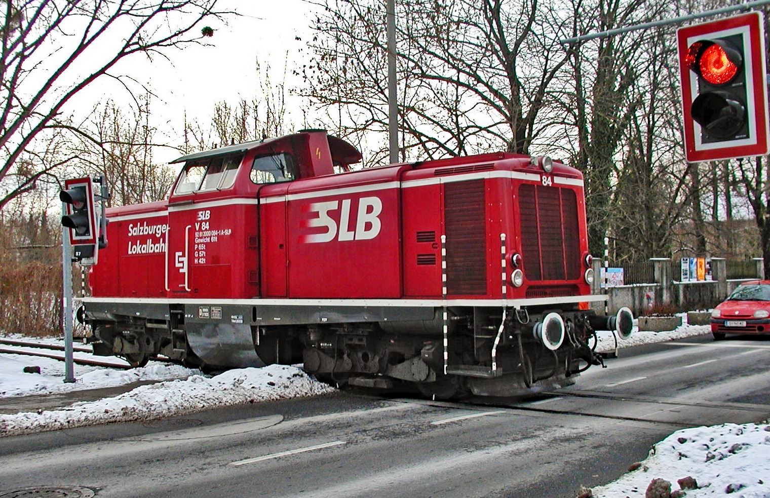 Eisenbahnkreuzung Oberndorf mit neuer Kirche St. Nikola Stadtbahnzug im Oberndorfer Park. Die RegioTram genannte Regionalstadtbahn Kassel. SLB Güterverkehr Stieglbahn, Eisenbahnkreuzung Kleßheimer-Allee