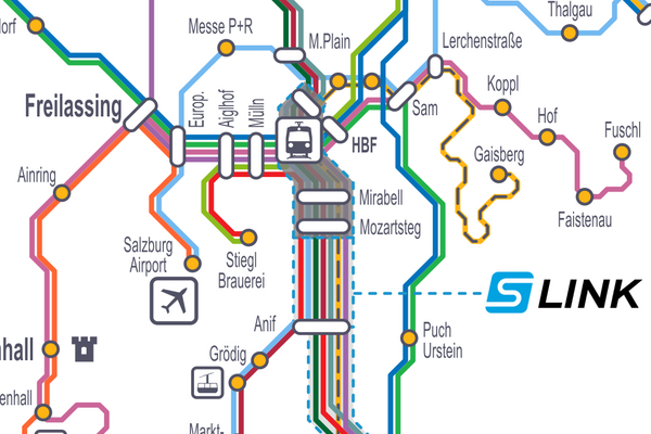 Das Projekt S-LINK wird fortgeführt. Die vorgeschlagene unterirdische Trasse (Variante 108 A) vom Lokalbahnhof bis zur Akademiestraße wird gutgeheißen. Gemäß bestehender Finanzierungsvereinbarung mit Bund und Land beteiligt sich die Stadt mit 50 Millionen Euro (= 25 % von gesamt 200 Millionen) bis zum Mirabellplatz.