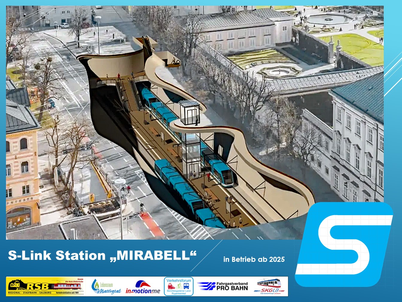 Was ist der S-Link? Eine leichte Antwort: Die unterirdische Lokalbahn durch die Welterbestadt Salzburg Visualisierung der ersten Station der Verlängerung "Mirabellplatz" Warum brauchen wir den S-Link? Ganz einfach, weil es zuviele Autos in der Stadt gibt!