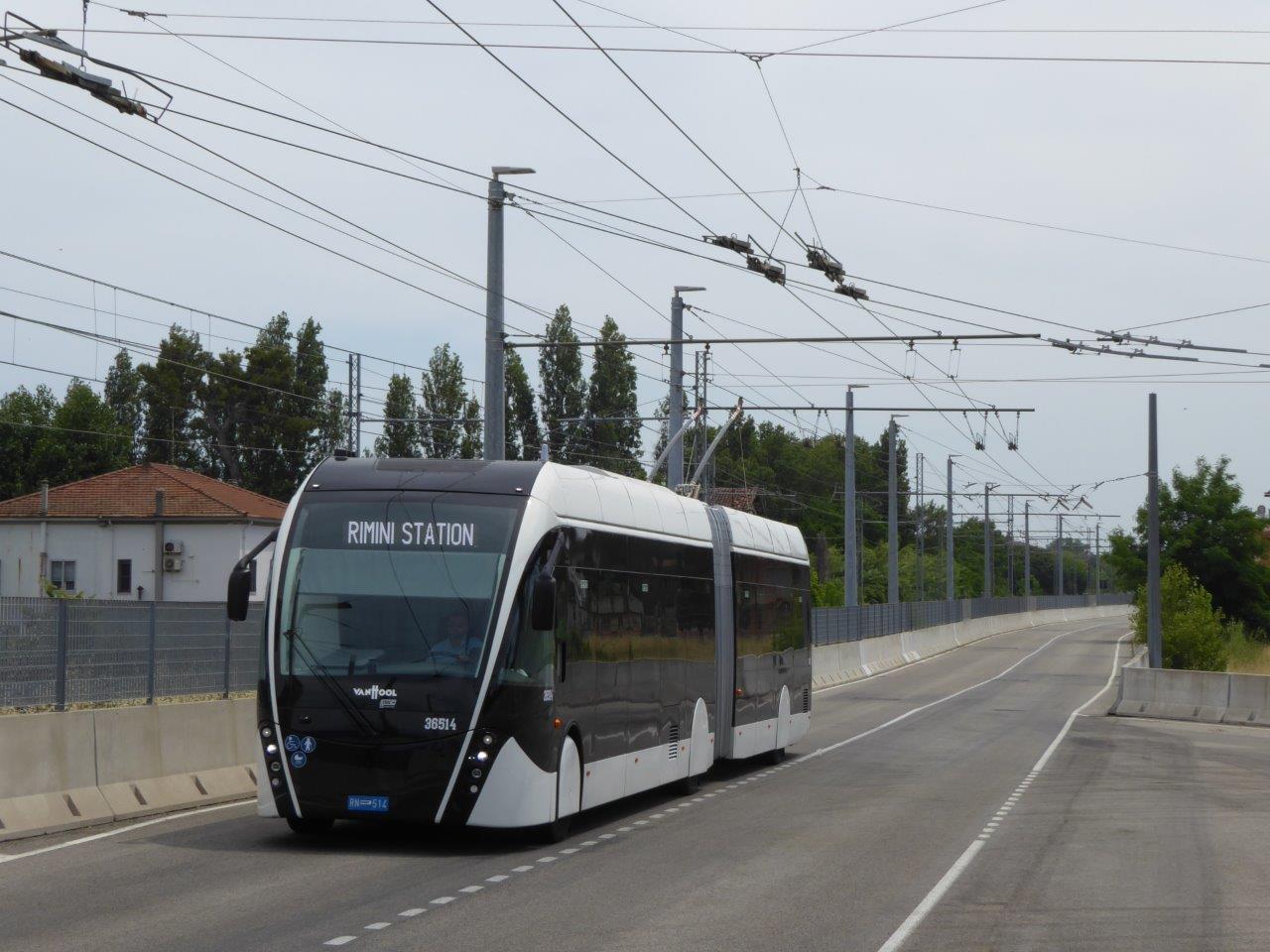 Trolleybus 36514 awaiting departure at Rimini FS - see the high platform and the metro like design of the stations.