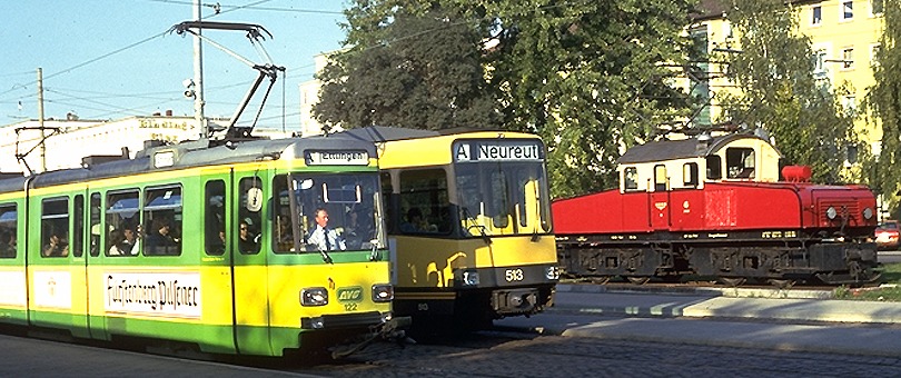 Zwischen diesen beiden Fotos von Exkursionen der Aktionsgemeinschaft Rote Elektrische 1996 und Verein "Die Rote Elektrische" 2022 sind 26 Jahre und einige weitere Exkursionen nach Karlsruhe vergangen!