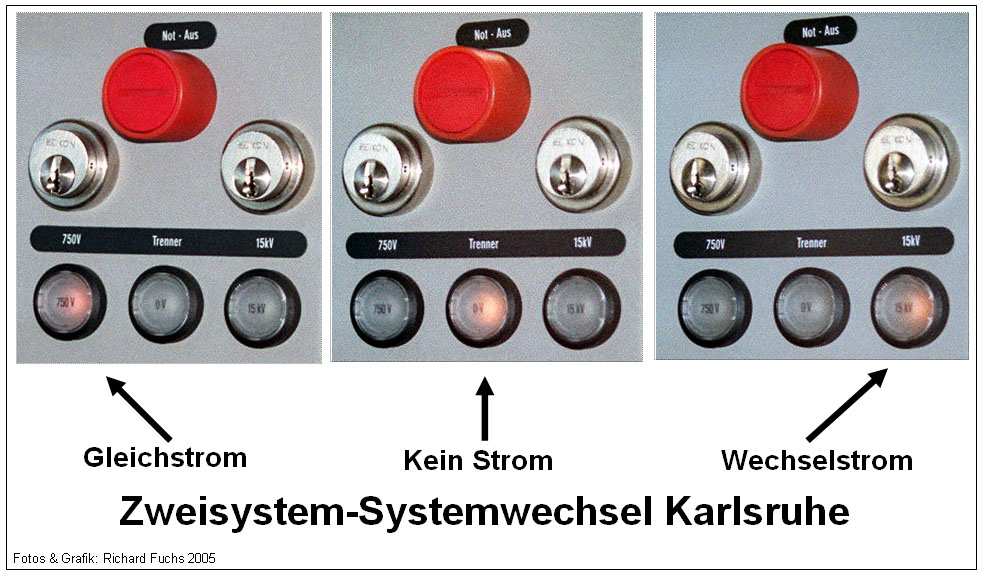Der Triebfahrzeug-Führer sieht am Steuerpult den jeweiligen Zustand der Spannung in der Fahrleitung an der Kontrolllampe. Er selbst muss nicht eingreifen, weil die Umschaltung erfolgt automatisch.