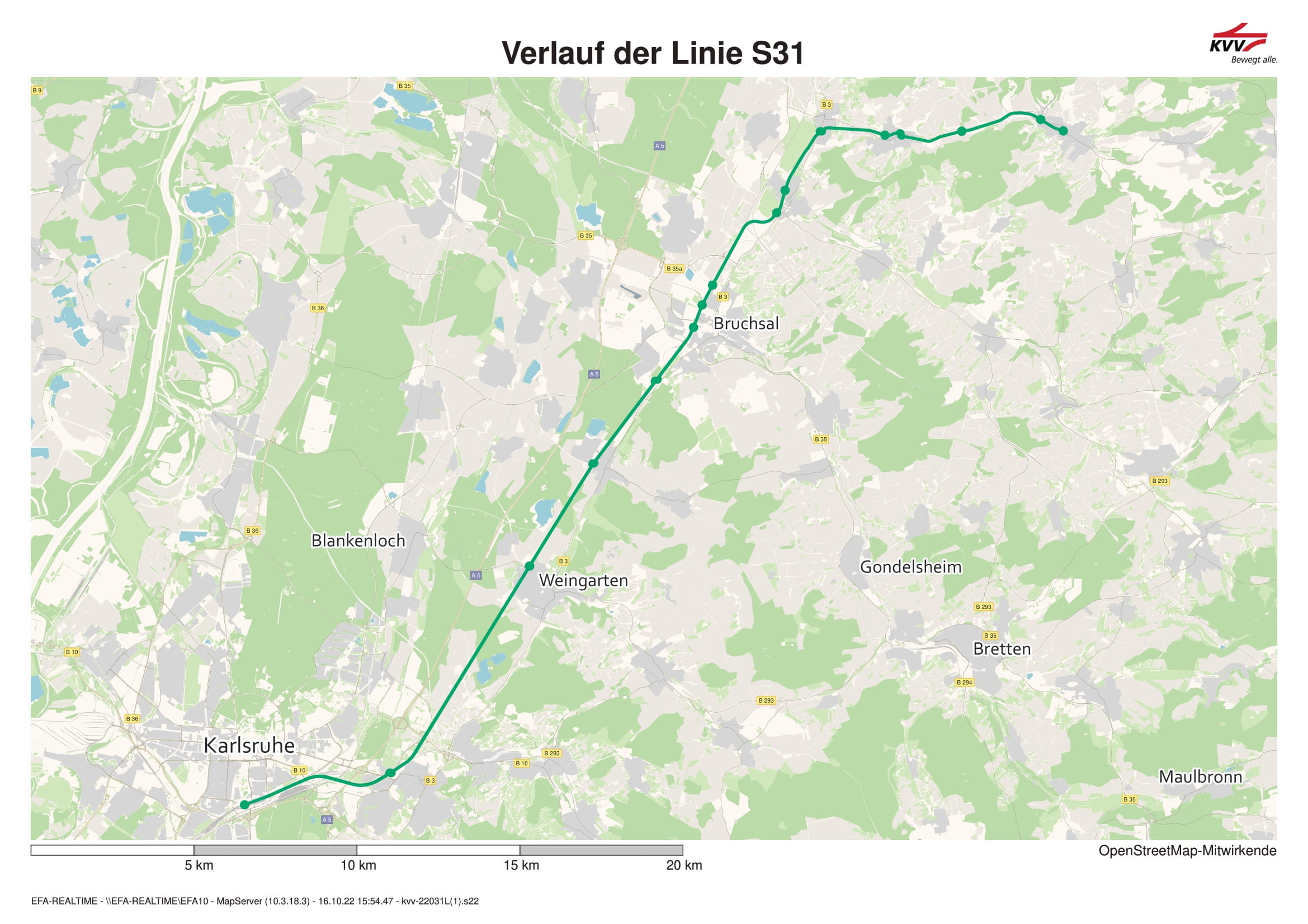 Plan Kraichgaubahn S4 Karlsruhe Bretten