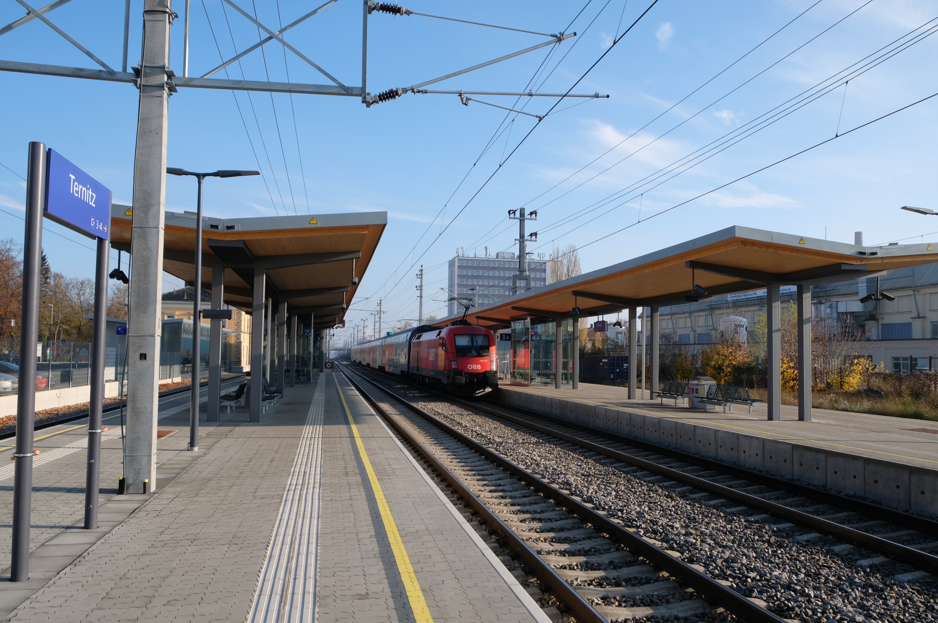 - Errichtung zweier neuer Inselbahnsteige inkl. gesamter Bahnsteigausstattung (Sitzgelegenheiten, Beschilderungen etc.) und Glas-Wartekojen