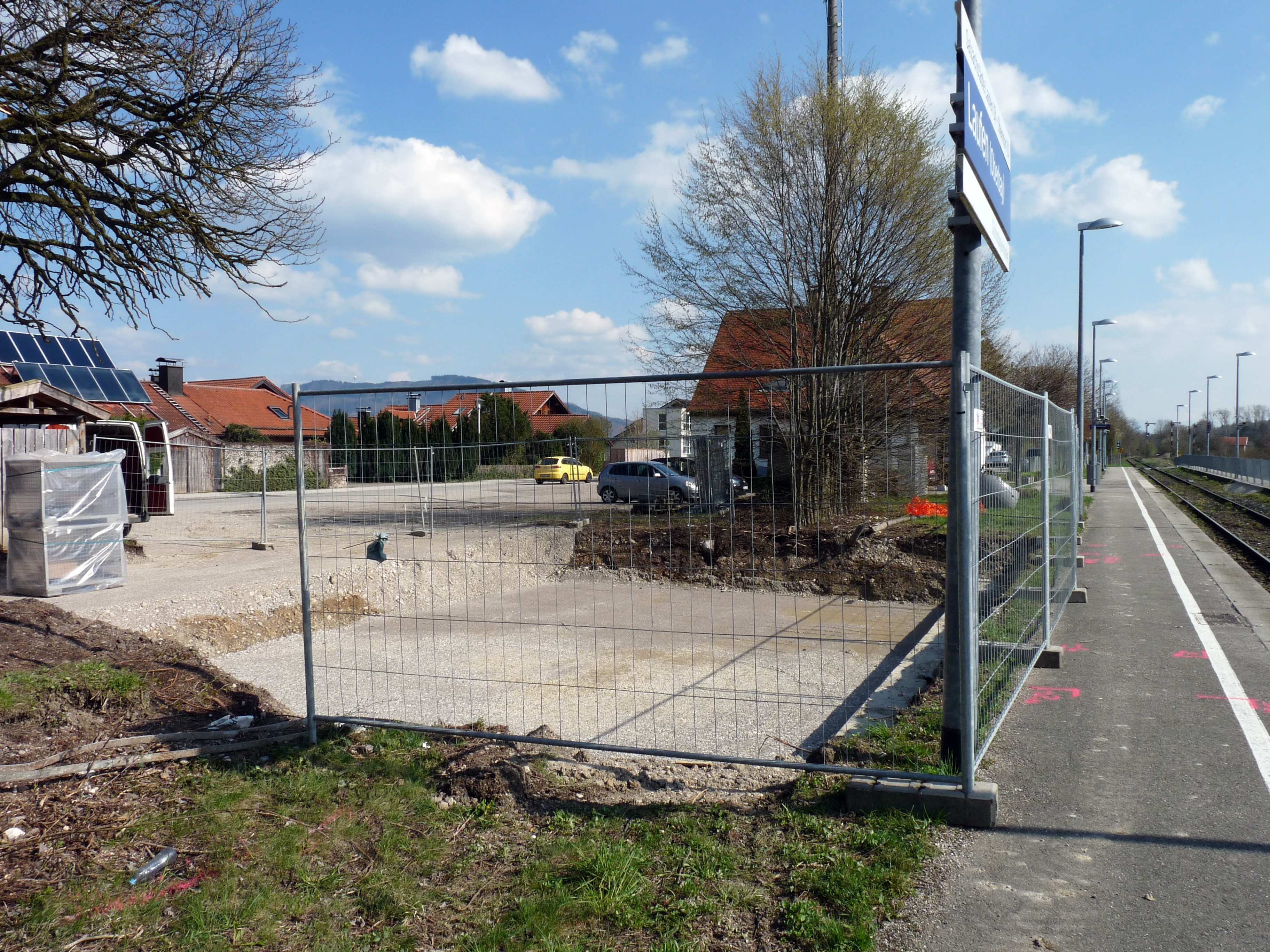 In den letzten Tagen haben die Bauarbeiten am Bahnhof Laufen begonnen. Man hat die Fläche für den oder die künftigen Stellwerkscontainer hergerichtet (Bild 7) und Container für das Baubüro, Toiletten und Gerätschaften neben der ehemaligen Stückguthalle aufgestellt (Bild 8).