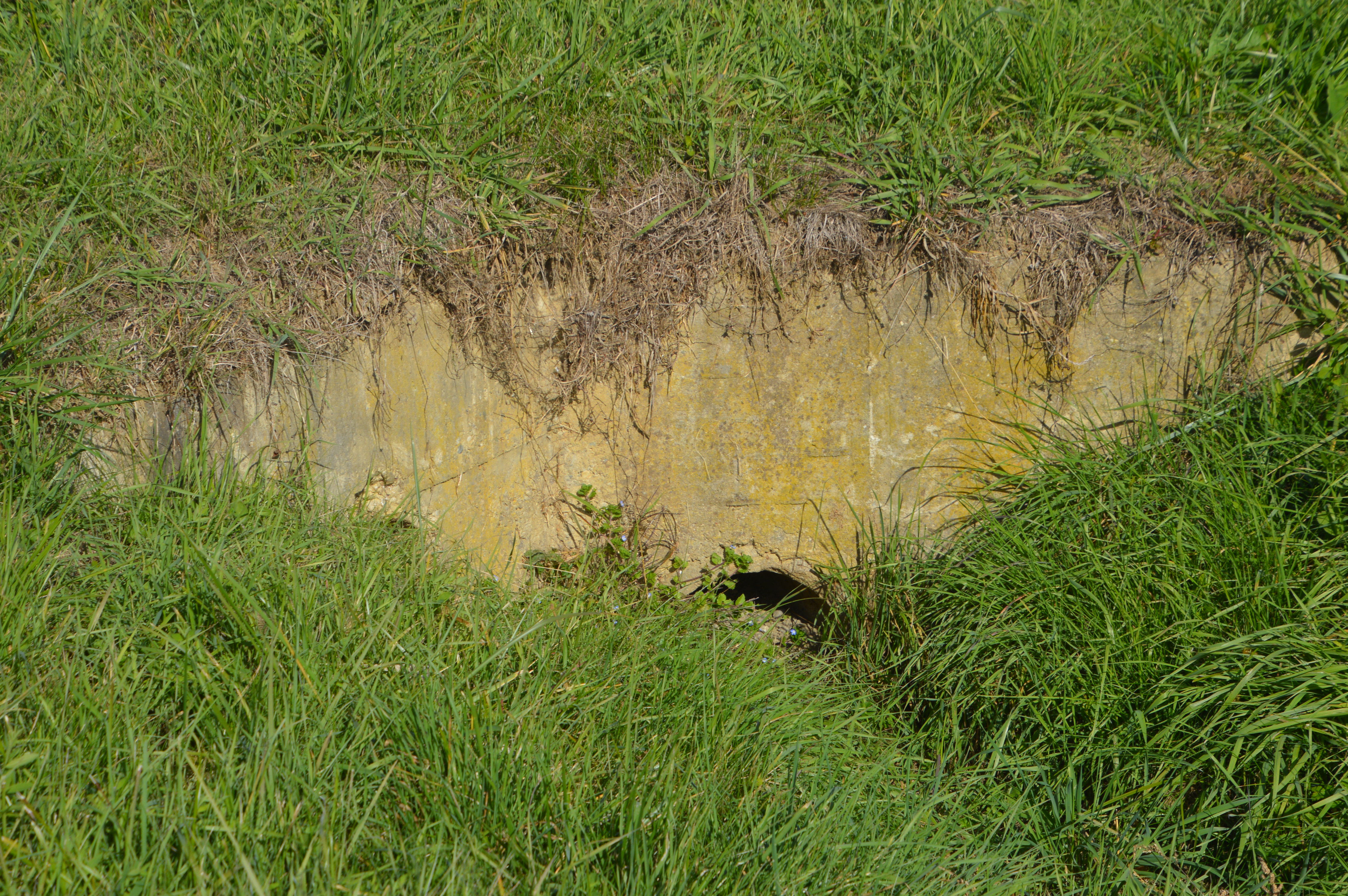 Wasserdurchsättigter Hang gefährdet den Bahndamm im Bereich Oedt da die Bachdurchlässe im Bahndamm keine Verbindung zur Drainage im Hang haben.