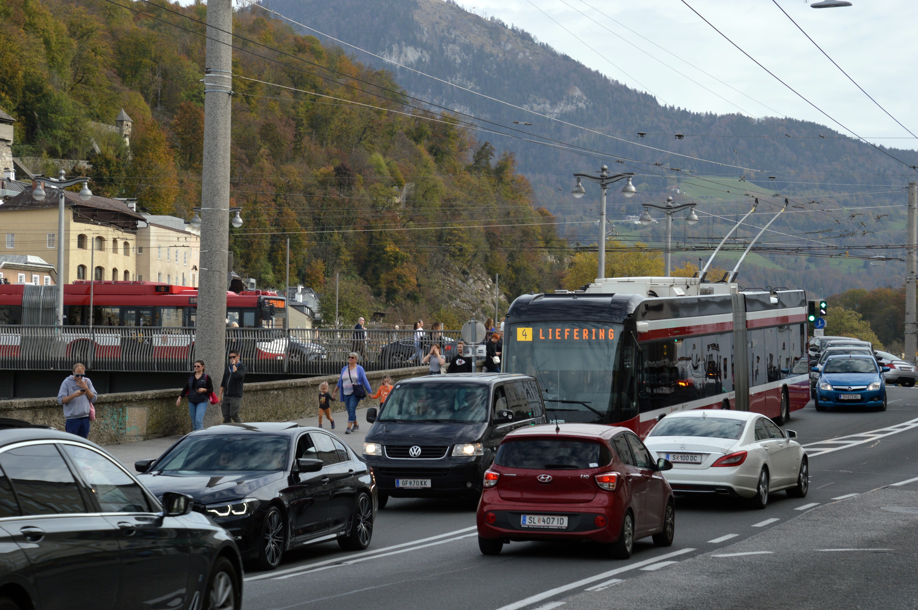 Die Verkehrsprobleme sind mittlerweile derart massiv, dass es schon seit längerem nicht mehr auf bestimmte Uhrzeiten ankommt. Stau kann man in Salzburg eigentlich immer haben. Dem entsprechend steckt dann auch der ÖV fest.