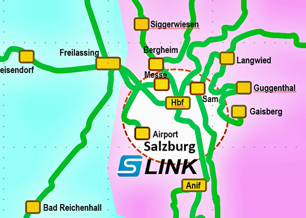 Es gibt sieben auf die Landeshauptstadt Salzburg zulaufenden Schienenstrecken, drei aus Bayern (Berchtesgaden – Freilassing - Salzburg, Rosenheim - Traunstein – Freilassing – Salzburg und Mühldorf – Laufen – Freilassing- Salzburg) und vier auf österreichischer Seite (Ostermiething – Lamprechtshausen – Oberndorf – Salzburg, Bischofshofen – Golling – Hallein – Salzburg, Attnang/Puchheim – Steindorf – Salzburg und Braunau – Mattighofen - Steindorf – Salzburg). Alle dieser Schienenstrecken müssen nur gebündelt und gemeinsam durch den Innenstadttunnel geführt werden. Dazu ist der Innenstadttunnel, als Herzstück der Mobilität im gesamten Zentralraum, das leistungsfähige pulsierende Kernstück des gesamten öffentlichen Verkehrs im Zentralraum Salzburg mit den angrenzenden Regionen in Bayern und Oberösterreich geplant! Unabhängig vom Innenstadttunnel besteht die Möglichkeit, auf allen Bahnstrecken zusätzliche Haltestellen, dem Bedarf der Bevölkerungsentwicklung geschuldet, einzurichten. Wenn sich im Einzugsbereich von 300-400 Metern zu einer Bahn eine Siedlung ohne Bahn-Haltestelle befindet, ist eine solche unverzüglich einzurichten, völlig losgelöst vom Bau des Innenstadttunnels des S-Link in Salzburg. Eisenbahnen neigen dazu, seit ihrem Entstehen, sich zu Netzen auszubilden, was das System so einzigartig macht.