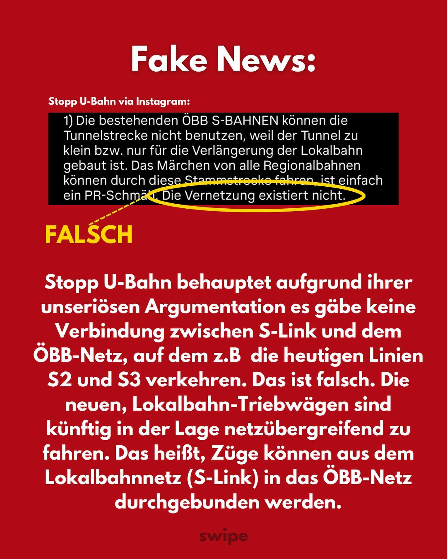 Fake News: Stopp U-Bahn behauptet aufgrund ihrer unseriösen Argumentation es gäbe keine Verbindung zwischen S-Link und dem ÖBB-Netz, auf dem z.B die heutigen Linien S2 und S3 verkehren. Das ist falsch. Die neuen, Lokalbahn-Triebwägen sind künftig in der Lage netzübergreifend zu fahren. Das heißt, Züge können aus dem Lokalbahnnetz (S-Link) in das ÖBB-Netz durchgebunden werden.