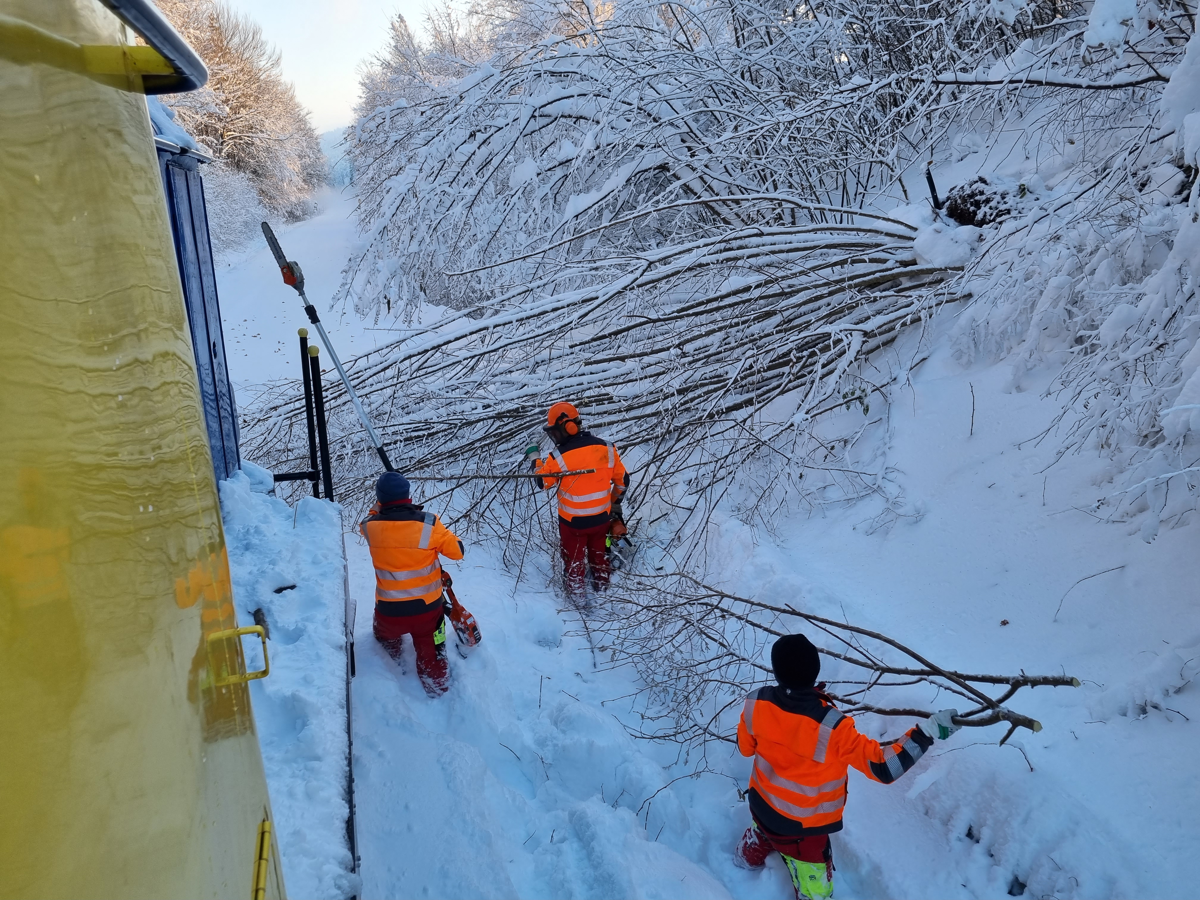 Aufräumarbeiten nach Schneefällen: Deutsches Eck ab sofort wieder für Zugverkehr frei