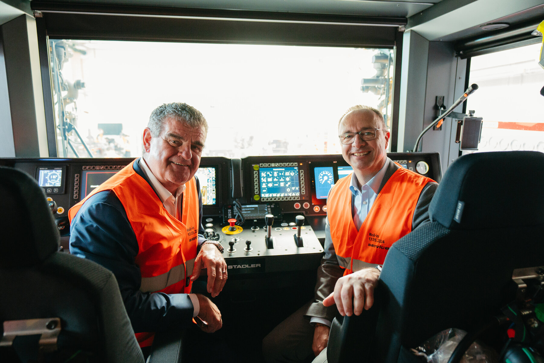 Peter Spuhler und Johann Pluy vor dem "Servicejet" © ÖBB / Stadler