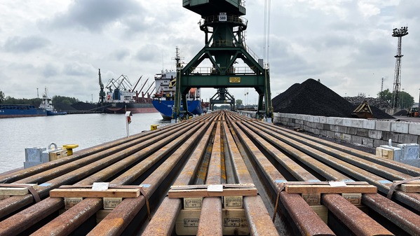 20 Stück 2x45 ft InnoWaggons, ausgestattet mit unserem Palettensystem, liefern Schienen durch Polen. Auf einem Waggon befinden sich 15 Schienen in einer Reihe, gestapelt in vier Lagen. Das heißt, auf einen 2x45 ft InnoWaggon passen 60 Stück der 25 Meter langen Gleise. Der Ganzzug ist ohne Lokomotive ca. 600 Meter lang und hat ein Gewicht (brutto) von 2.500 Tonnen. Das Palettensystem sichert die Gleise, ohne dass Gurte zur weiteren Sicherung der Ladung eingesetzt werden müssen. Mit unserer Lösung entfällt auch das Einölen der Ladeschwelle.