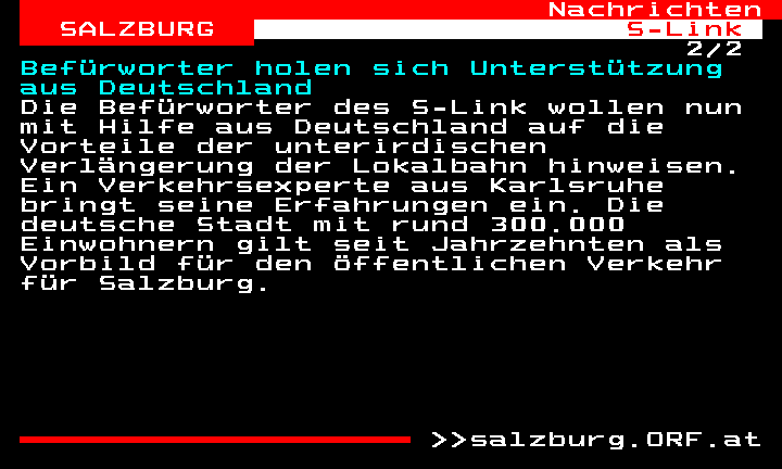 Die Befürworter des S-Link wollen nun mit Hilfe aus Deutschland auf die Vorteile der unterirdischen Verlängerung der Lokalbahn hinweisen. Ein Verkehrsexperte aus Karlsruhe bringt seine Erfahrungen ein. Die deutsche Stadt mit rund 300.000 Einwohnern gilt seit Jahrzehnten als Vorbild für den öffentlichen Verkehr für Salzburg.