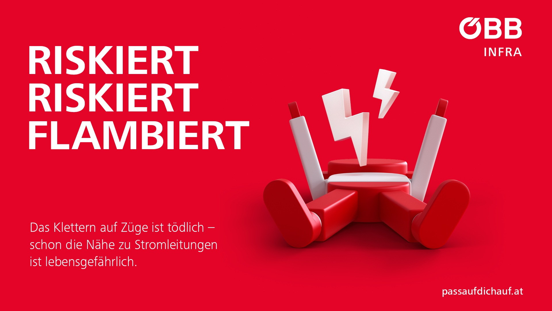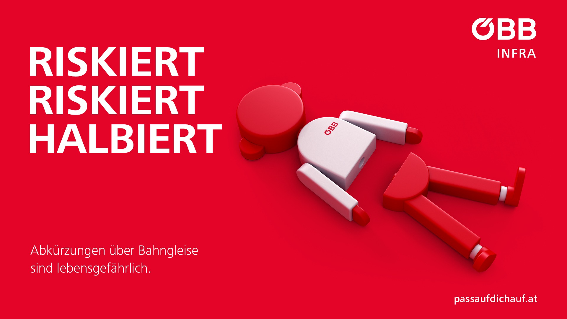 Pünktlich zum Schulstart setzen die ÖBB auf Bewusstseinsbildung zur Vermeidung von Gefahren an Bahnanlagen. Denn bei der Sicherheit gibt es keine Kompromisse. Das drückt auch die aufmerksamkeitsstarke Sicherheitskampagne aus. Sie hat das Ziel, das Bewusstsein für die sichere Benutzung von Bahnanlagen bei Kindern, Jugendlichen und Erwachsenen zu schärfen – mit bewusst aufrüttelnden Sujets auf Bahnhöfen, in Print-, Online- und den Sozialen-Medien, die zum Nachdenken und zur Diskussion anregen sollen. Es geht um (lebens-)gefährliche Situationen – aus Unachtsamkeit, Unwissenheit, aber auch Mutproben – beim verbotenen Queren von Bahngleisen, am Bahnsteig, beim Klettern auf Waggons durch Stromüberschlag oder um Unfälle an Eisenbahnkreuzungen.